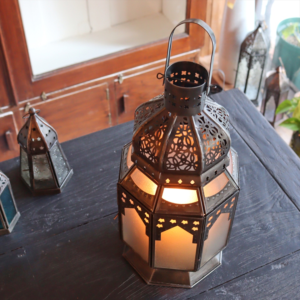 Key:モロッコランタン キャンドルホルダー ガラスシェード 照明 照明器具 店舗照明 インテリア モロッコ エジプト アイアン ランプ オリエンタル アラブ 中東 ガラスランプ Egyptian Morroco Lantern Iron Lamp Arabic Turkey Light エスニック
