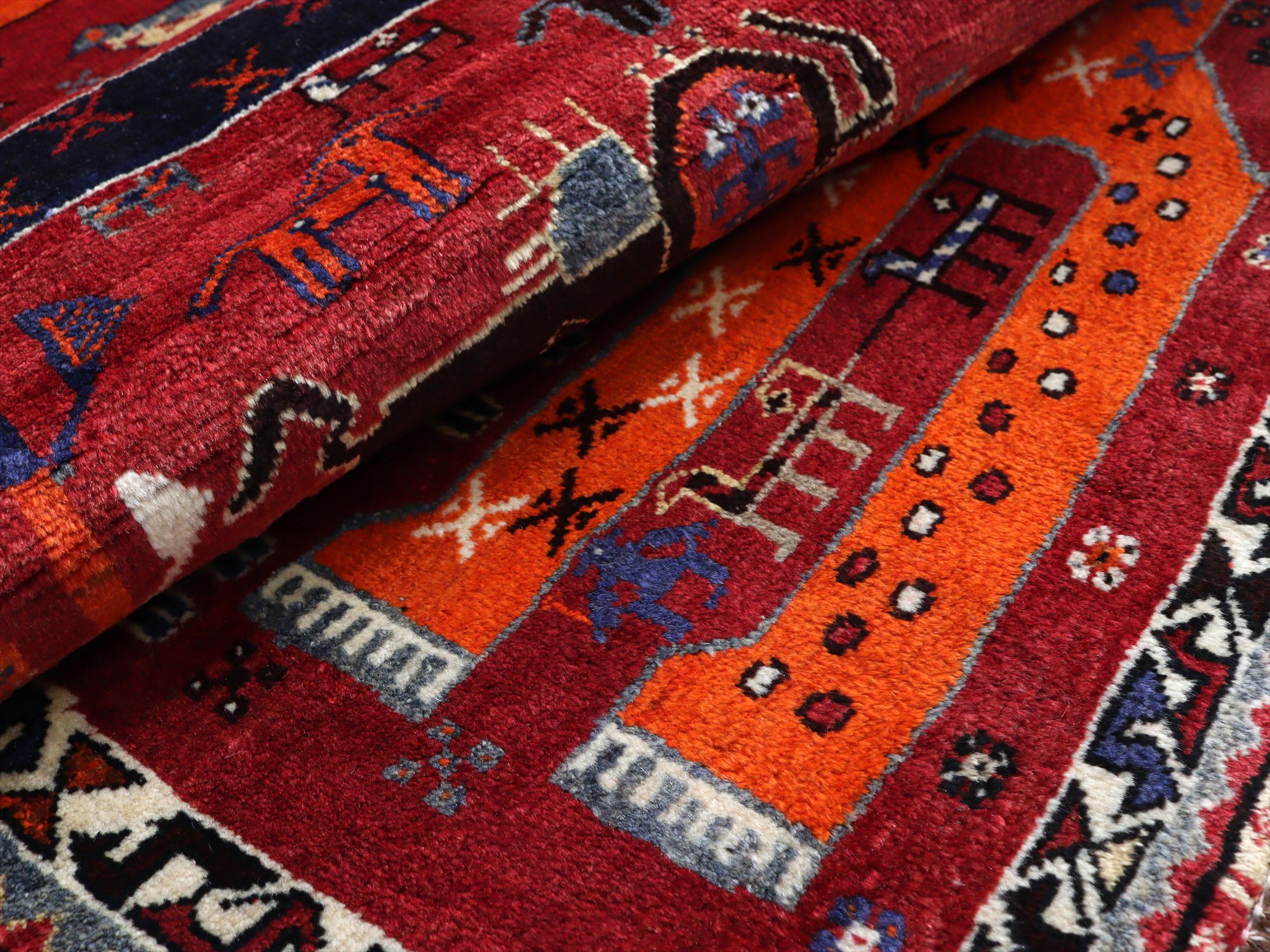カシュカイ族の象徴とされるライオンのモチーフですが、実際にはすでに絶滅してしまったライオンの姿を想像しながら、織り継がれてきたといいます。オールドライオンギャッベは、もともと販売のためではなく遊牧民たちが自分たちでテント(または部屋)で使うために織られたもの。生活の中で使用されていたものもあれば大切に保管してあったものもあり、状態は様々です。