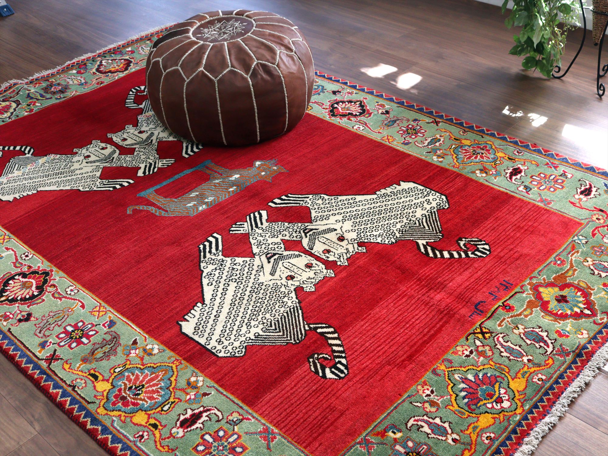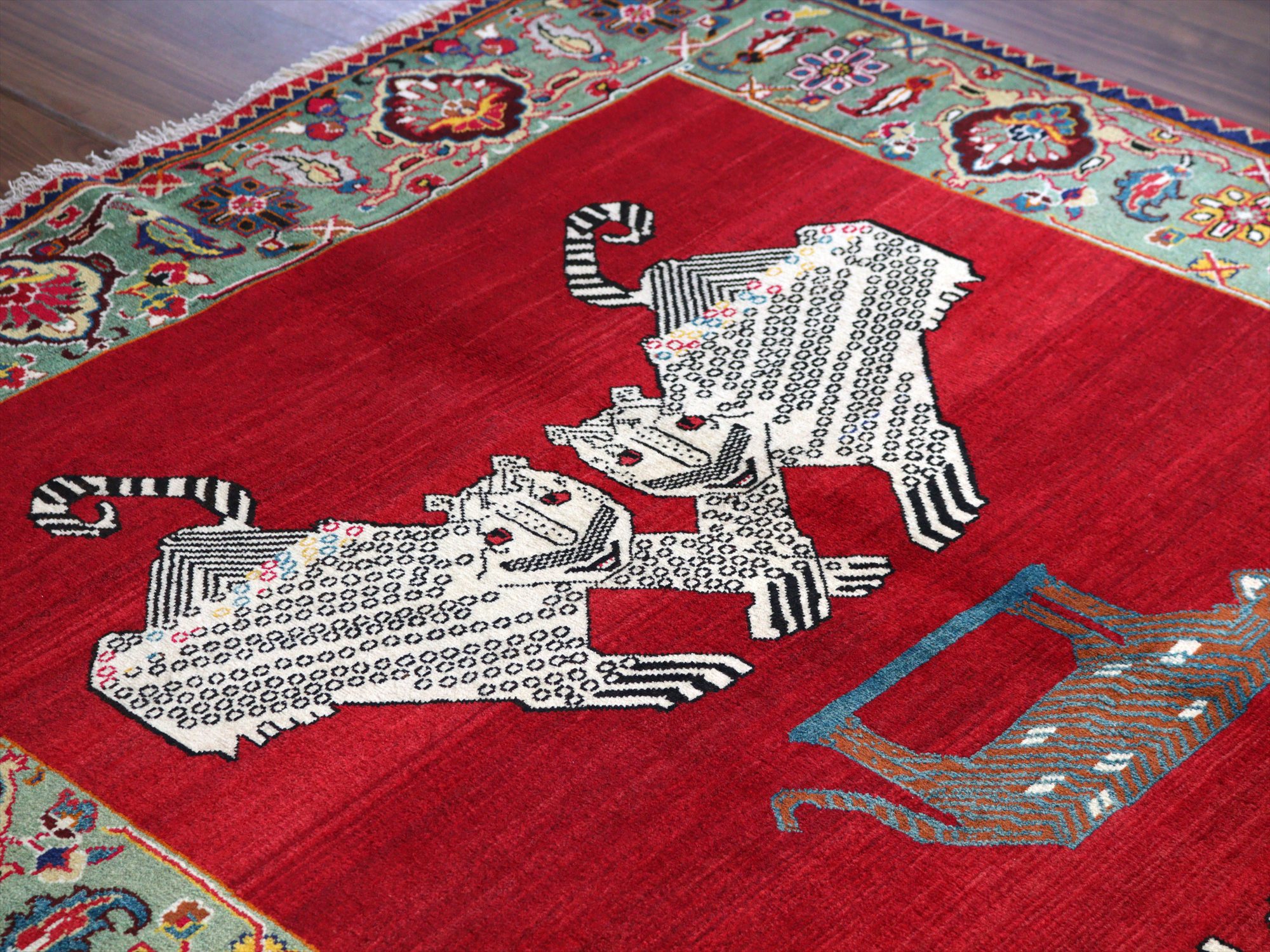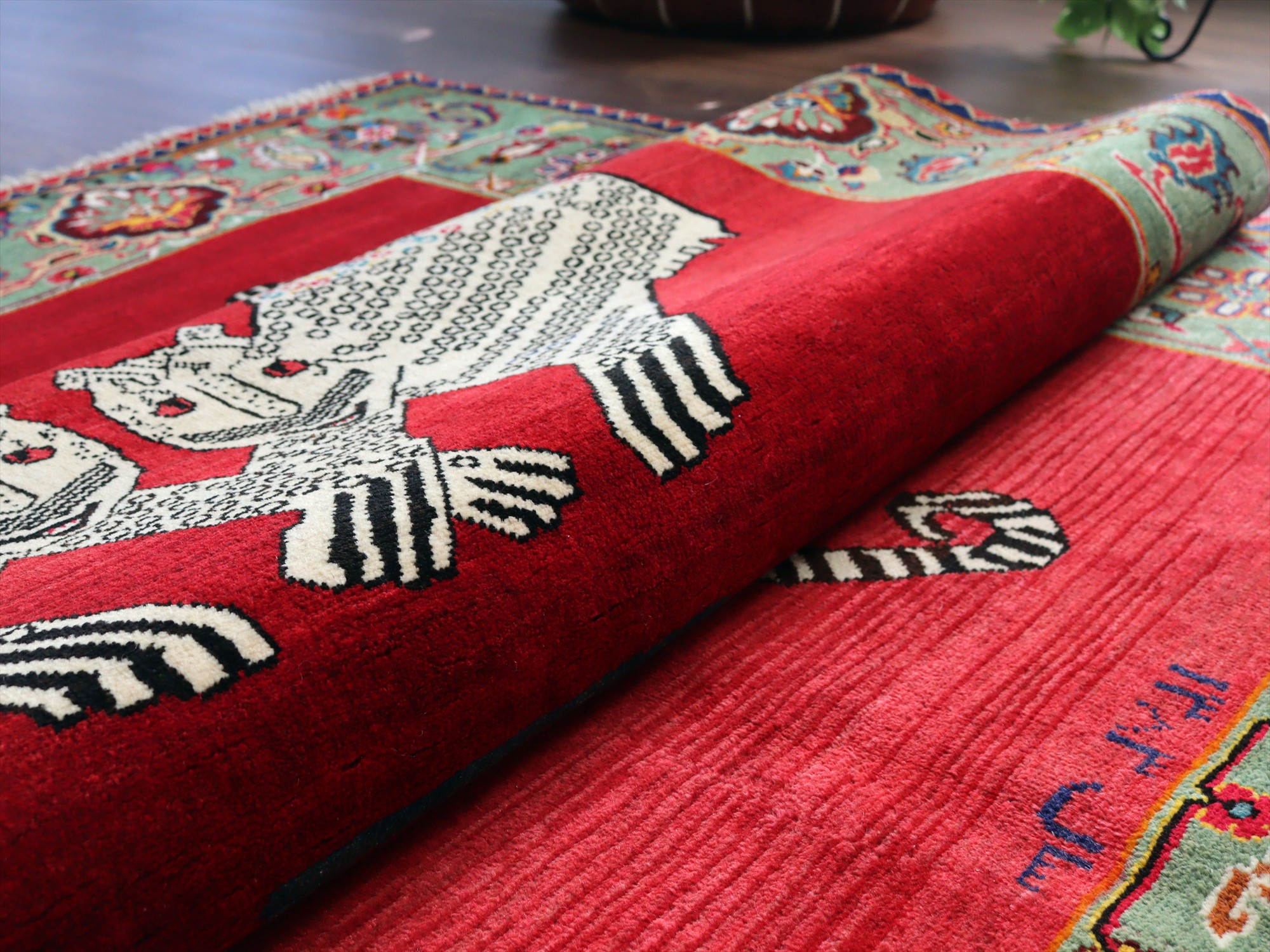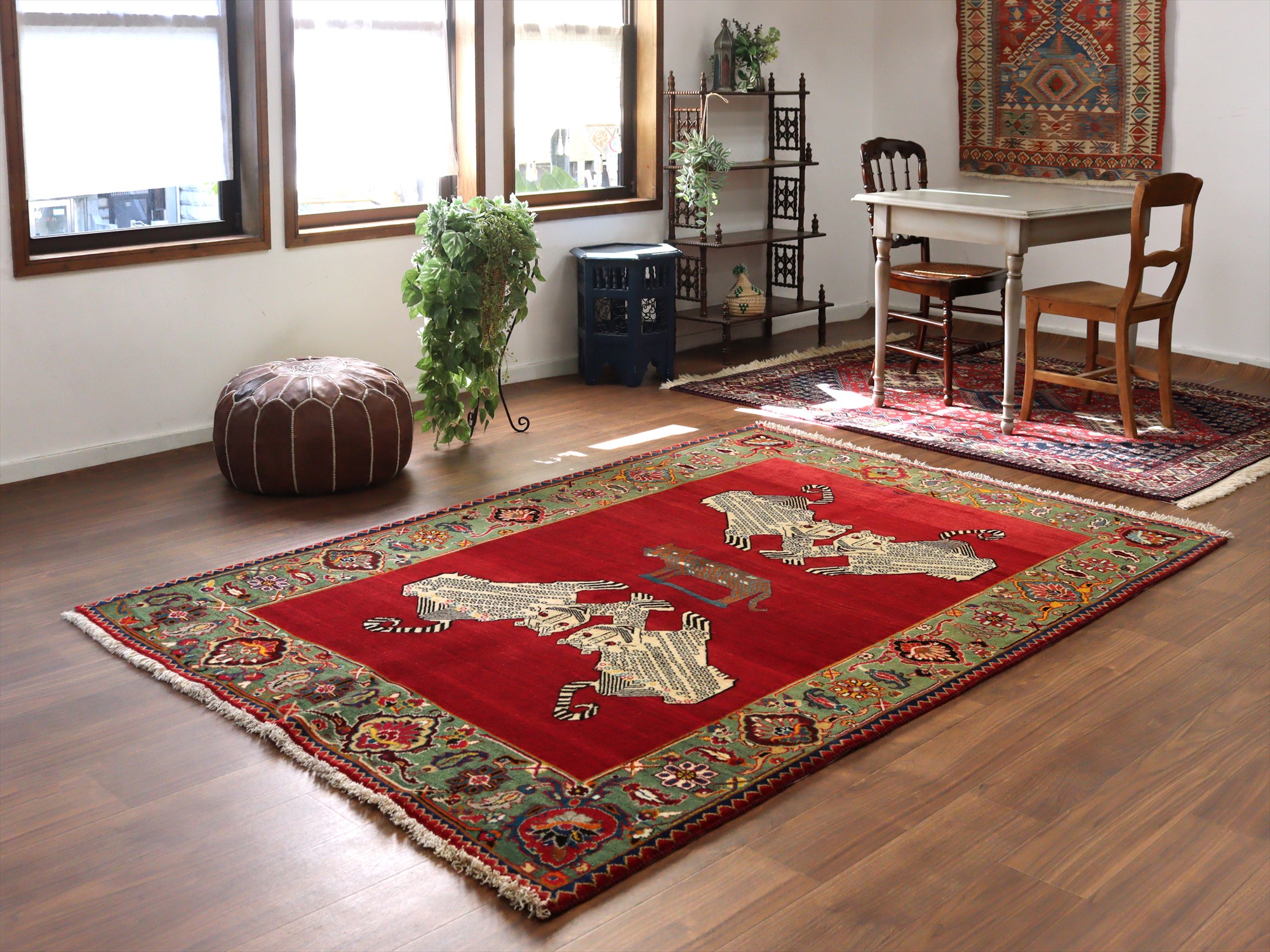 Key:old gabbeh, lion gabbeh, lion rug, vintage rug, Tribal rug, オールドギャベ, ライオンギャッベ, ライオンラグ, ラグ, ギャッベ, ギャベ, 部族絨毯, トライバルラグ, ヴィンテージ, コレクタブル, ウール製, イラン, ペルシャ, 手織り, じゅうたん, 絨毯