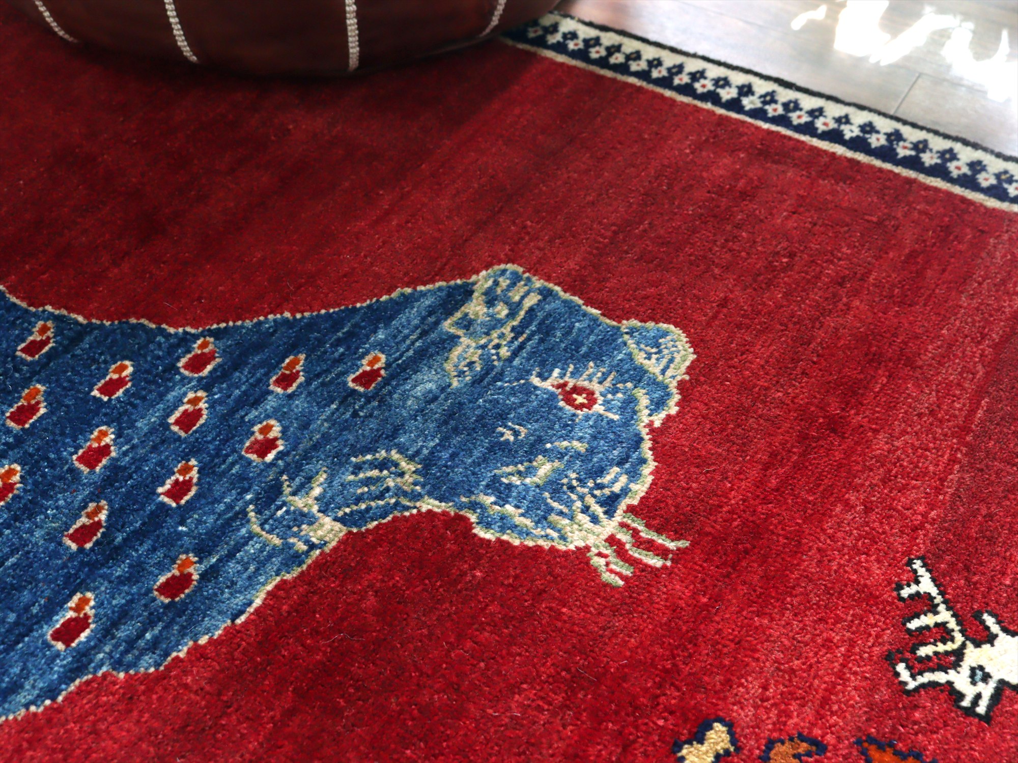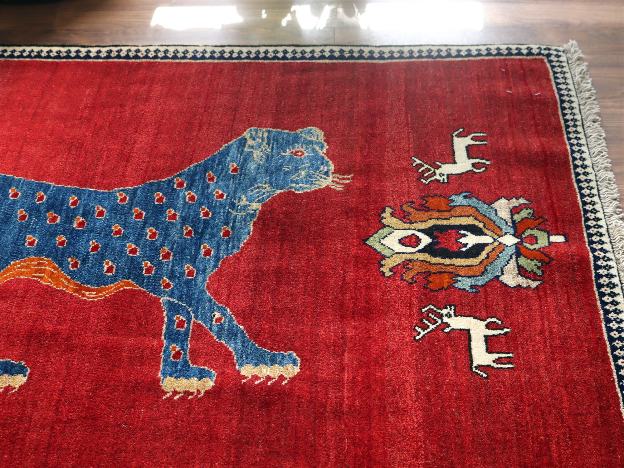 - ライオンラグ 青いヒョウ オールドギャッベ 158x100cm レッド ブルー パルメット