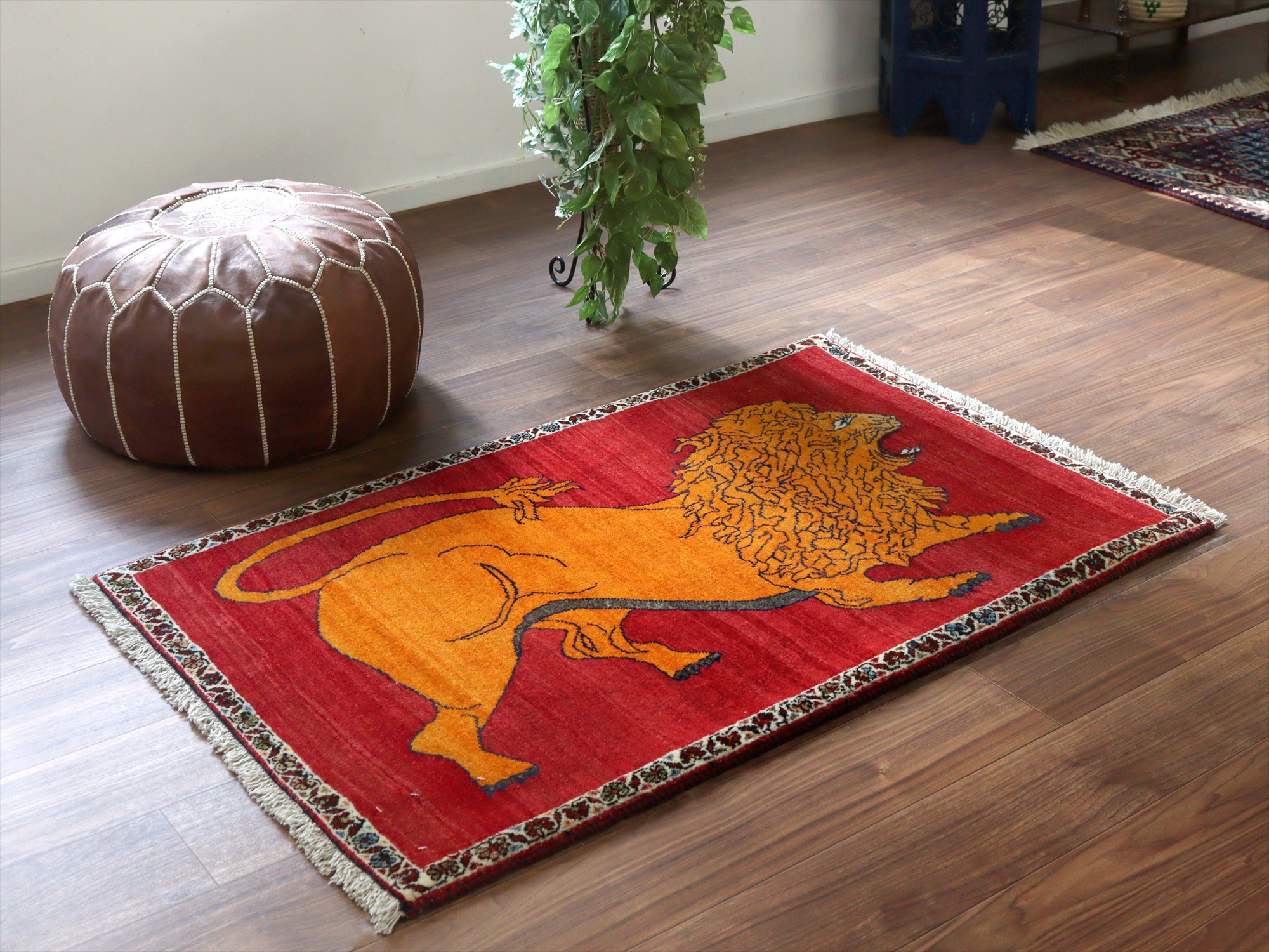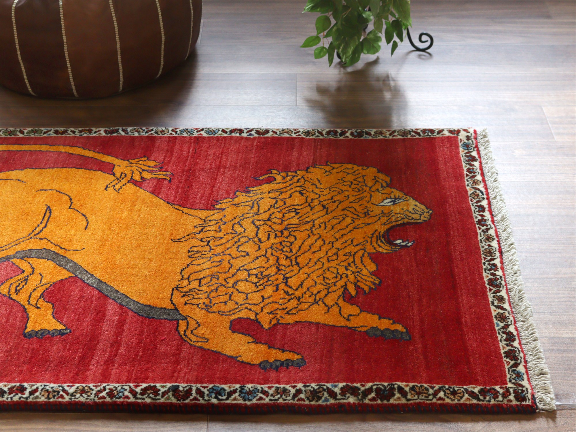 Key:old gabbeh, lion gabbeh, lion rug, vintage rug, Tribal rug, オールドギャベ, ライオンギャッベ, ライオンラグ, ラグ, ギャッベ, ギャベ, 部族絨毯, トライバルラグ, ヴィンテージ, コレクタブル, ウール製, イラン, ペルシャ, 手織り, じゅうたん, 絨毯