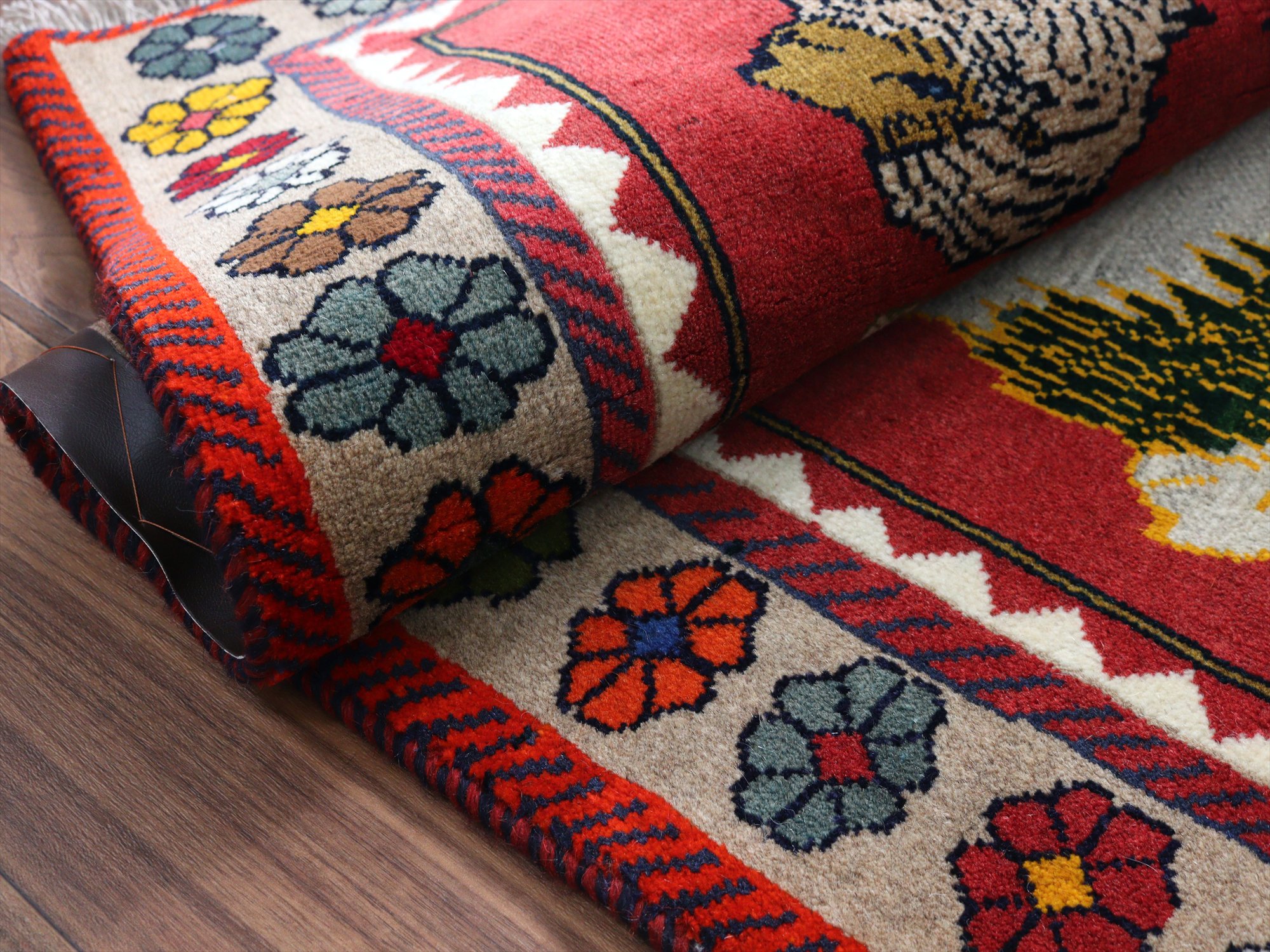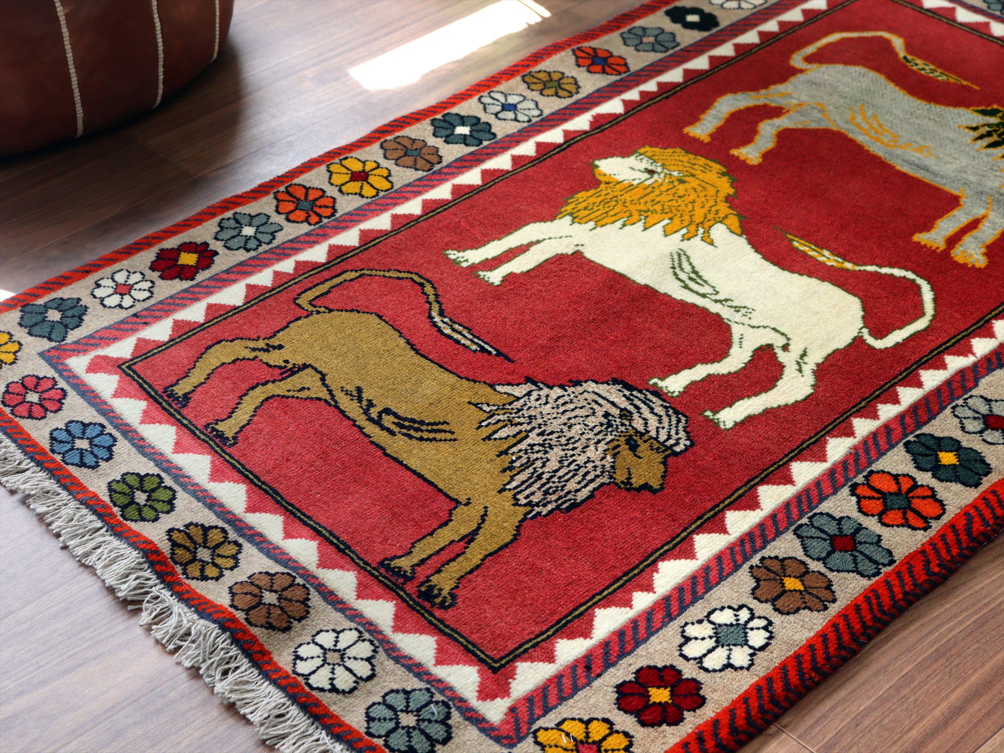 Key:old gabbeh, lion gabbeh, lion rug, vintage rug, Tribal rug, オールドギャベ, ライオンギャッベ, ライオンラグ, ラグ, ギャッベ, ギャベ, 部族絨毯, トライバルラグ, ヴィンテージ, コレクタブル, ウール製, イラン, ペルシャ, 手織り, じゅうたん, 絨毯