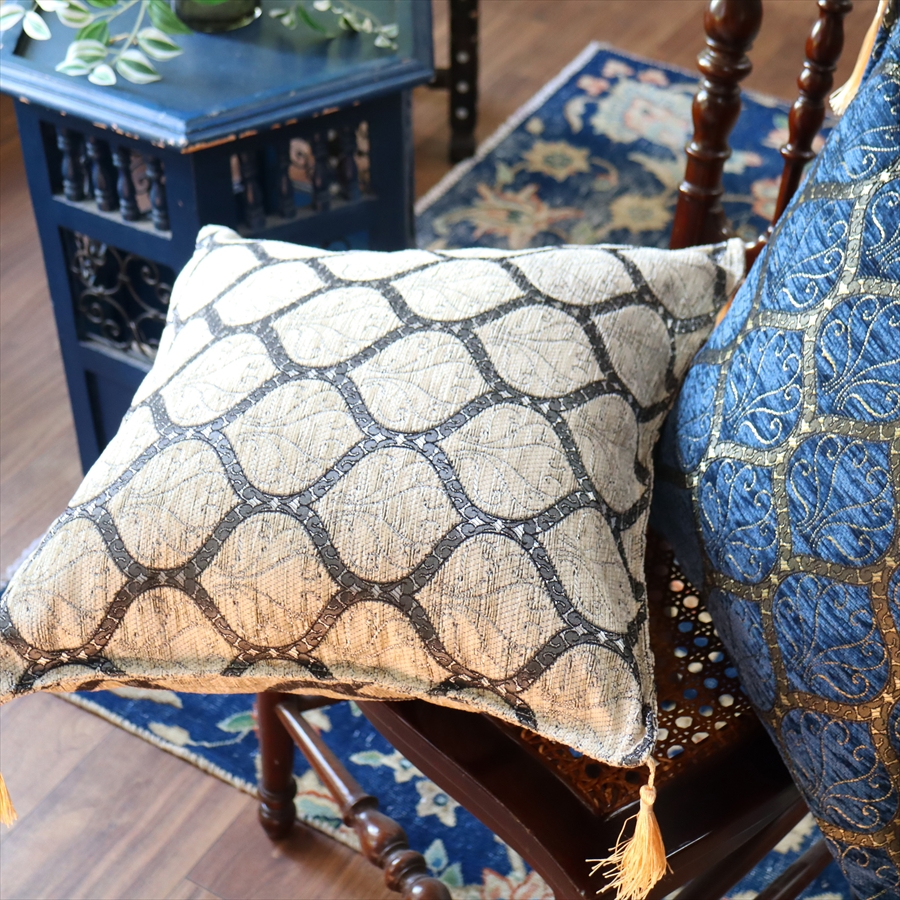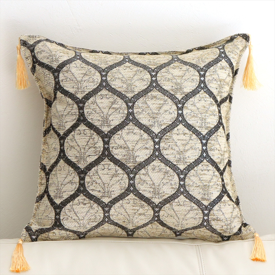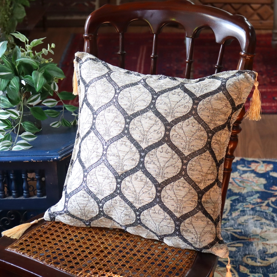- クッションカバー 45x45cm トルコデザイン シュニール素材 クレスト アイボリー