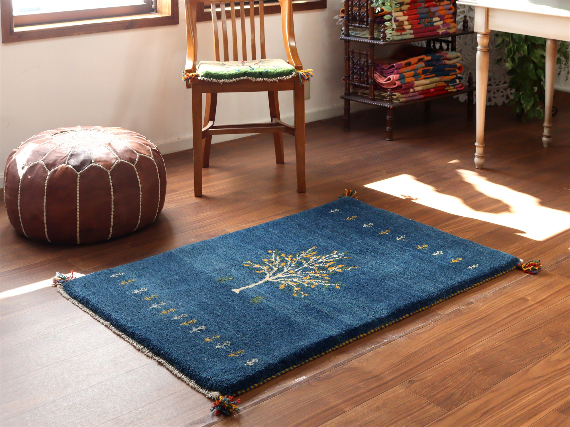 Key:ギャベ, ラグ, 手織り絨毯, 部族絨毯, 草木染, カシュカイ族, ウール製,センターラグ, ブルー, 青, 東京,中野区, ガラタバザール, Gabbeh, Tribal Rug, Hand knotted, wool, Natural dye, Shiraz, Fars, Quashkai