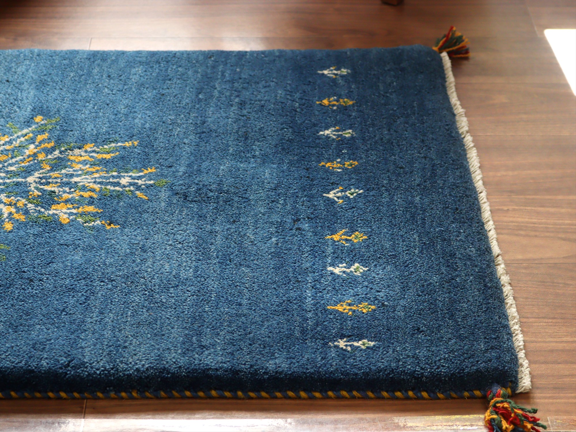 毛足が長く、パイルを含めたギャッベ全体の厚みは2.2-2.3cm程度。ボリューム感たっぷりのふかふかギャッベです。