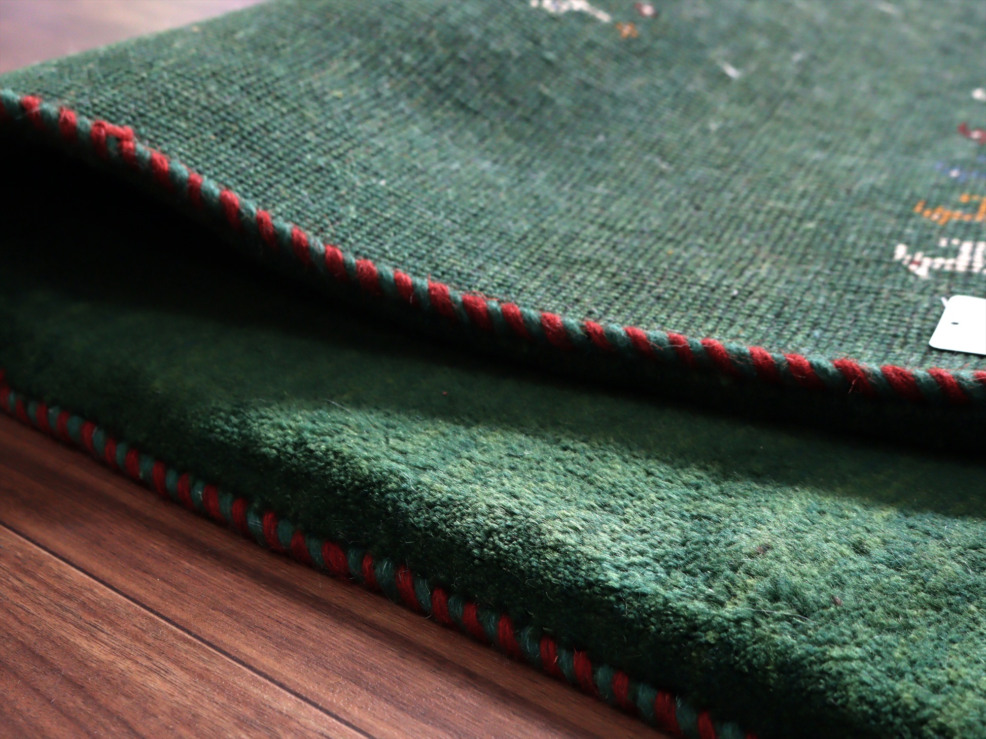 毛足が長く、パイルを含めたギャッベ全体の厚みは2.2-2.3cm程度。ボリューム感たっぷりのふかふかギャッベです。