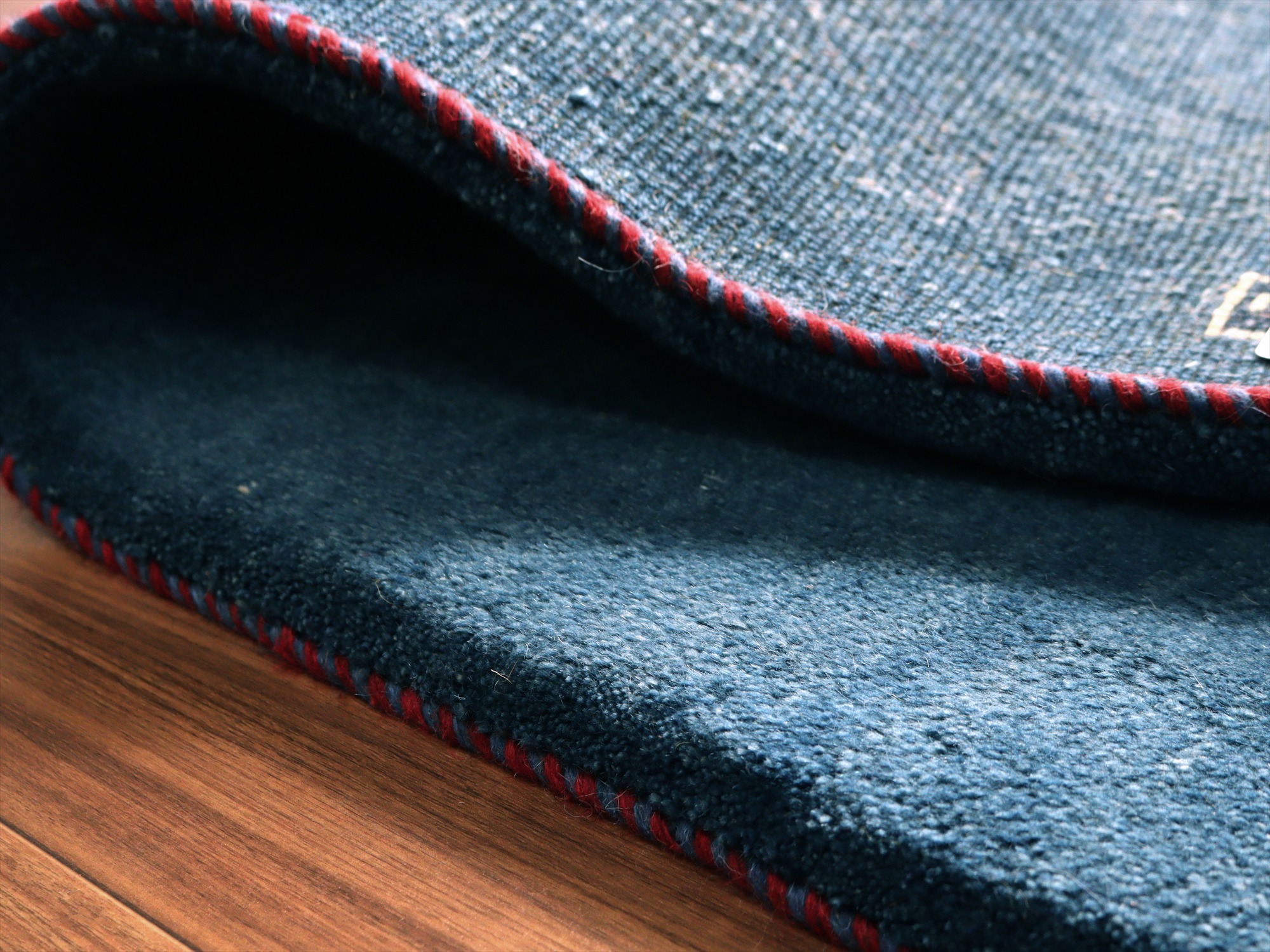 毛足が長く、パイルを含めたギャッベ全体の厚みは2.4-2.5cm程度。ボリューム感たっぷりのふかふかギャッベです。