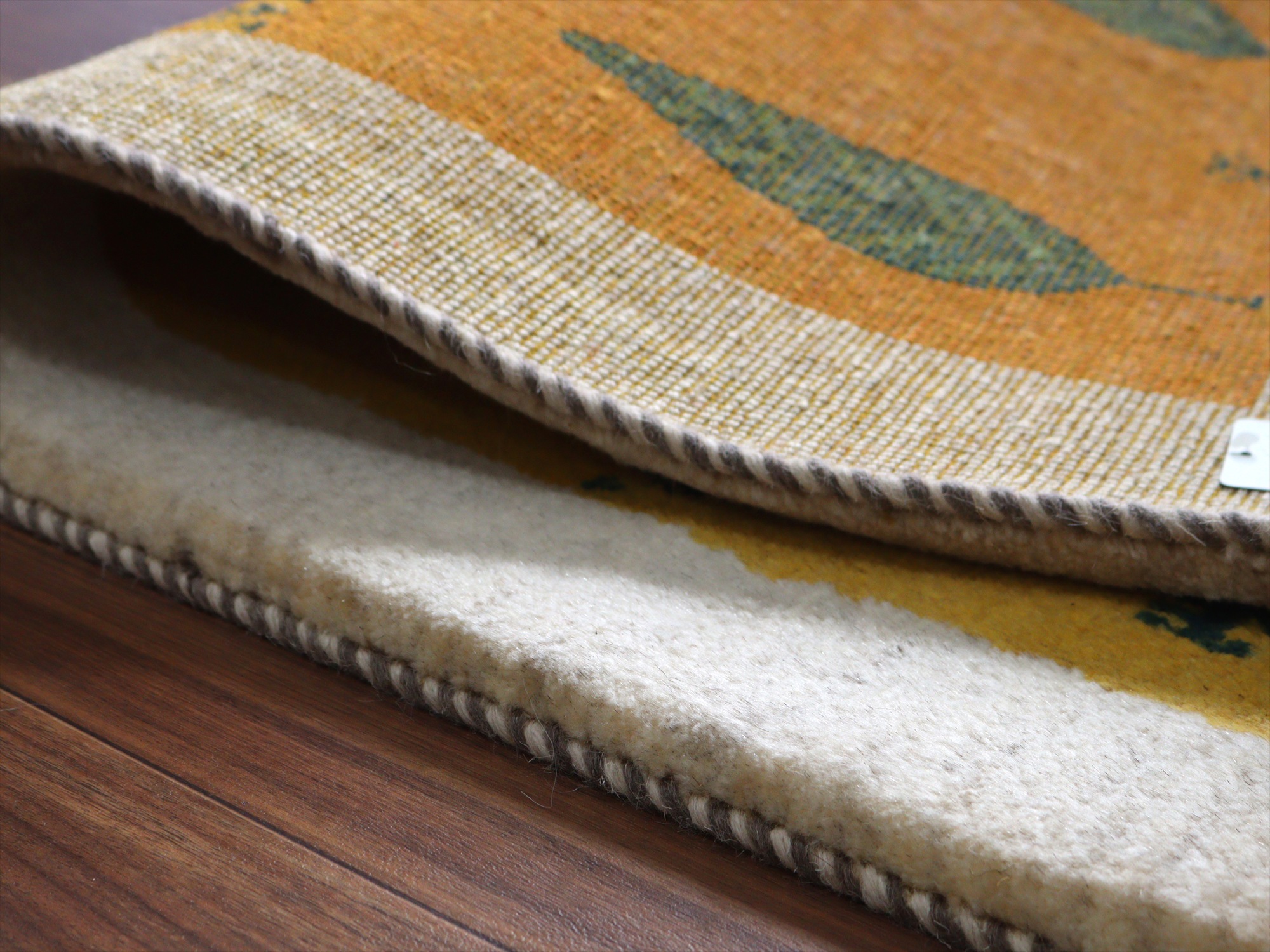 5. ギャッベ イランの手織りラグ 123x82cm 糸杉の樹 イエロー&アイボリー