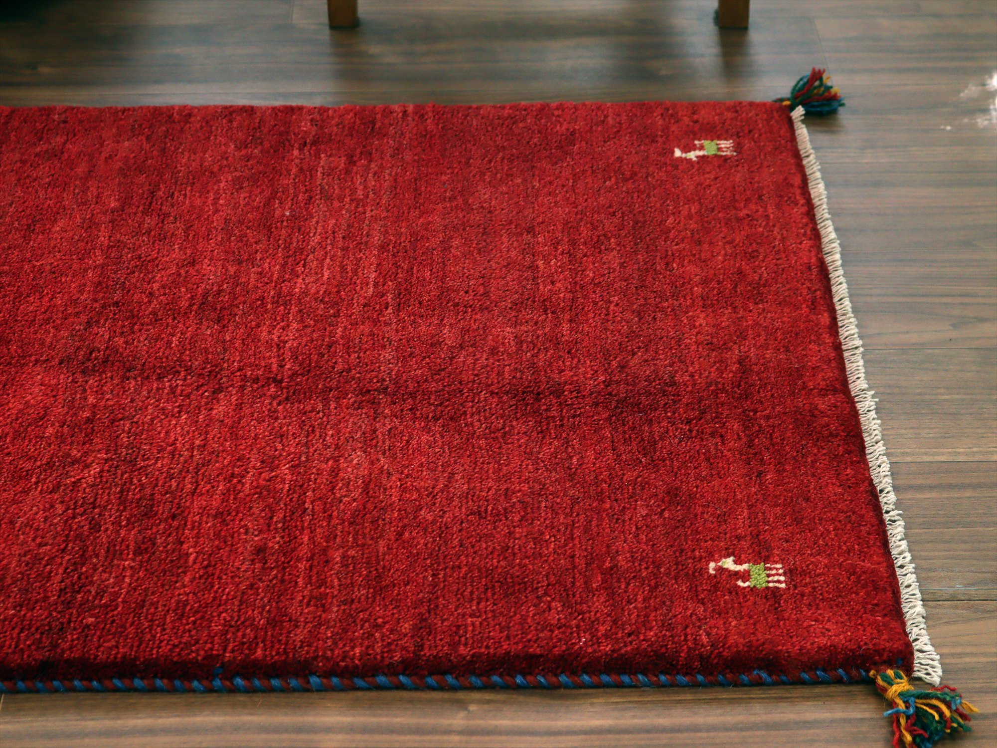 ギャッベ イランの手織りラグ 122x80cm シンプルモチーフ レッド