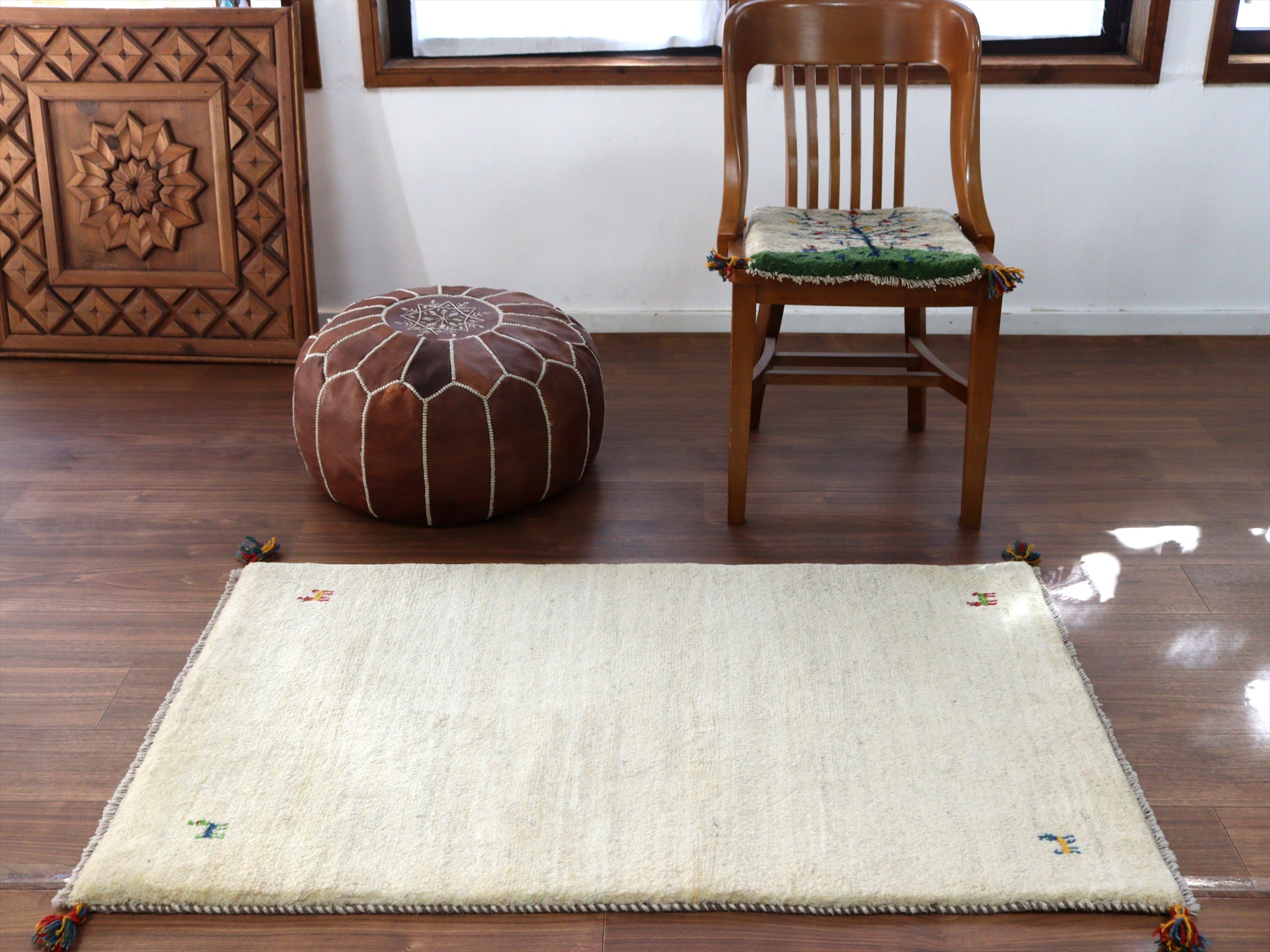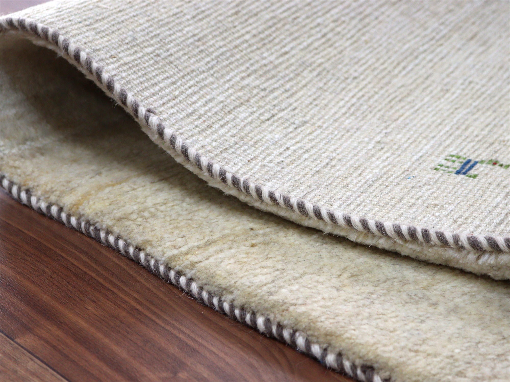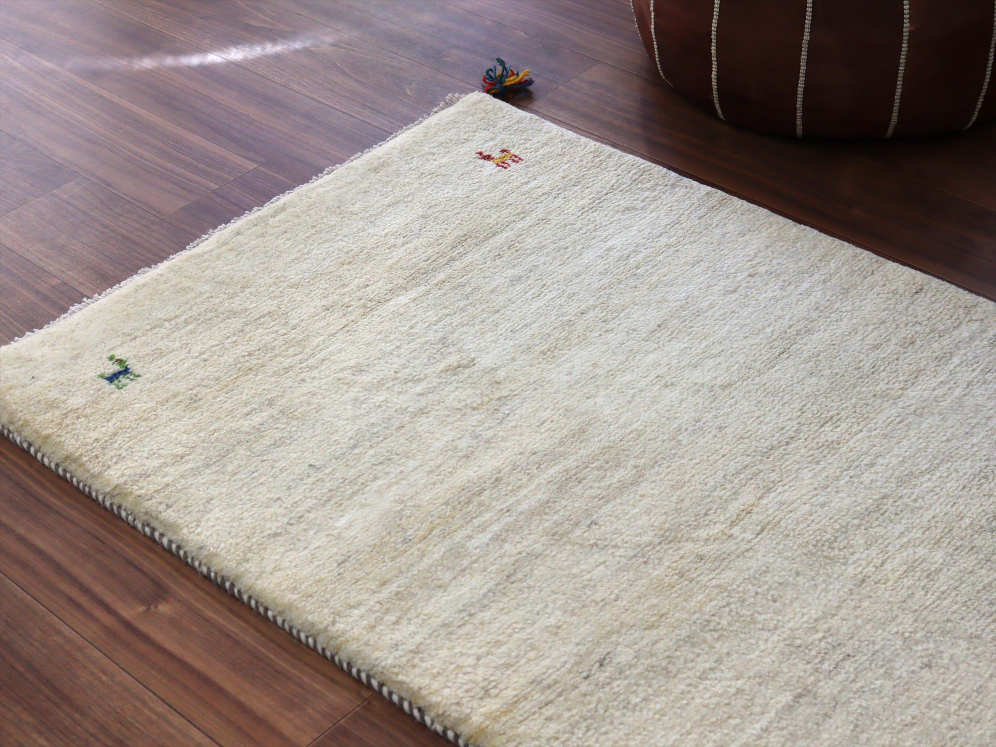 イランの手織りラグ ギャッベ 127x79cm シンプルデザイン アイボリー