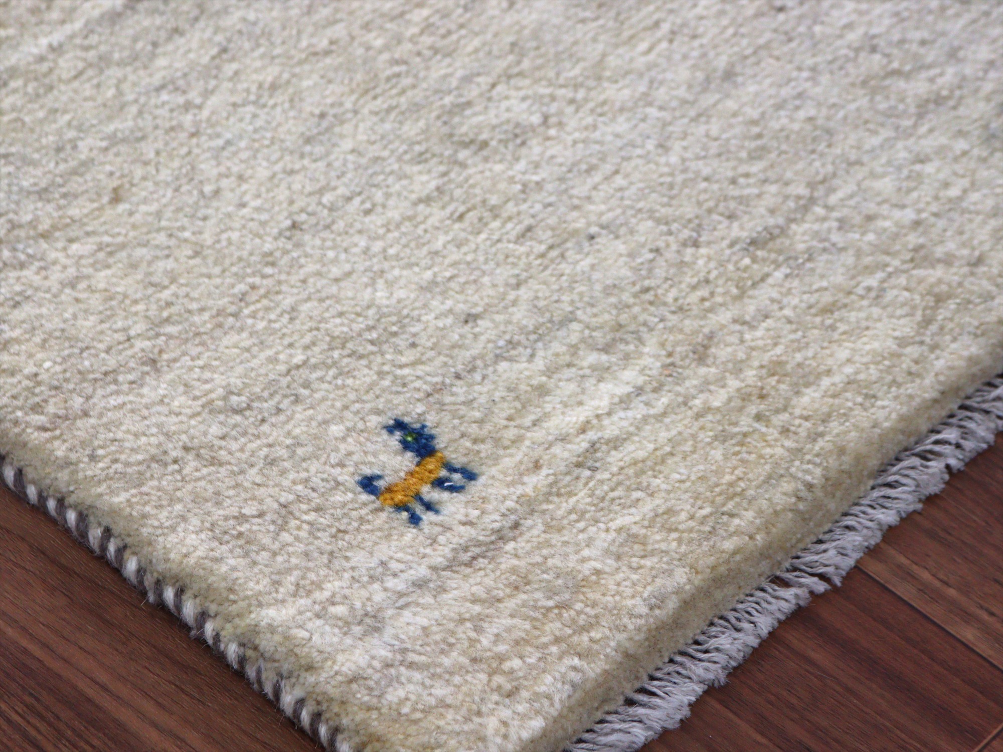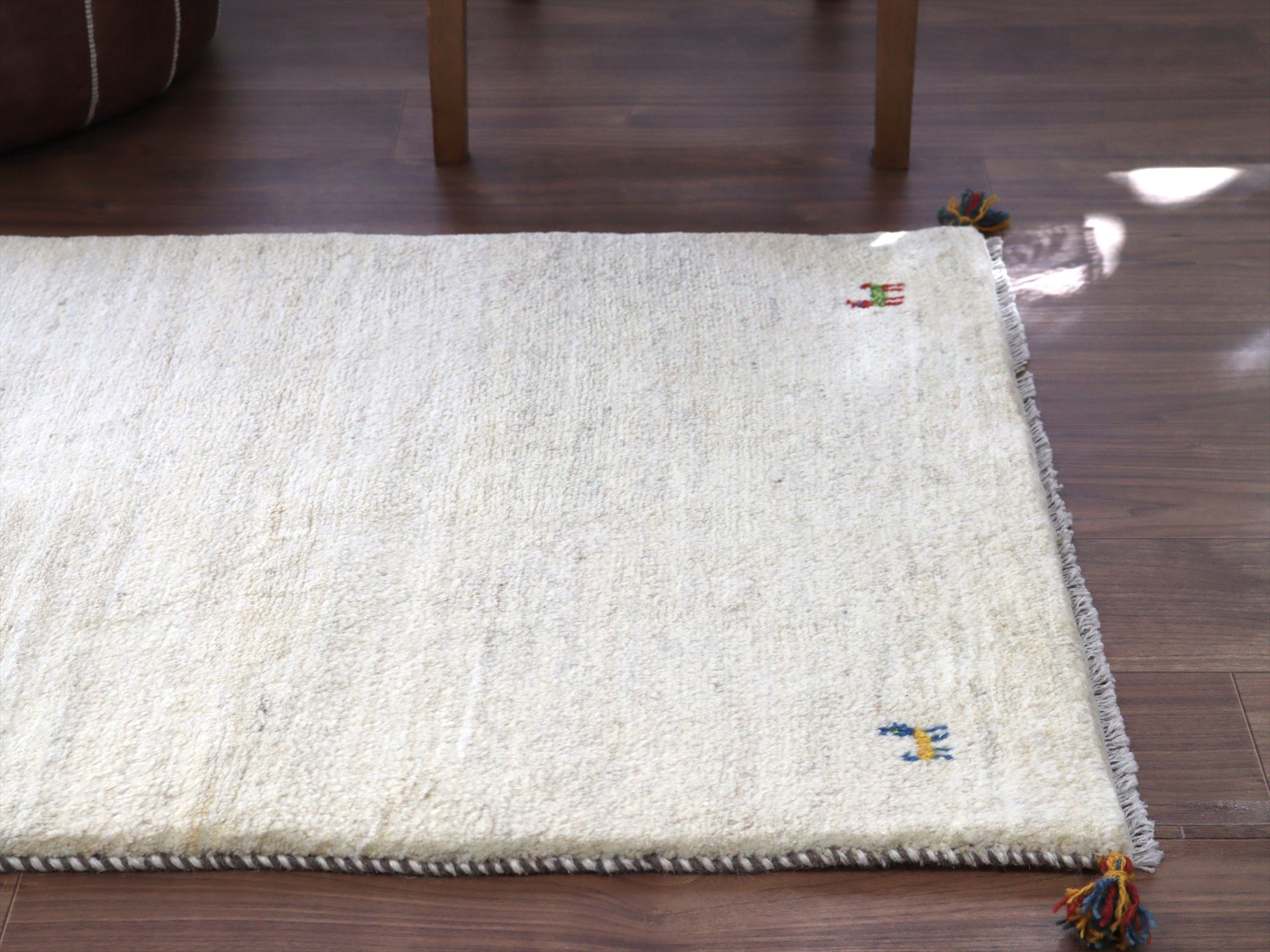 - イランの手織りラグ ギャッベ 127x79cm シンプルデザイン アイボリー