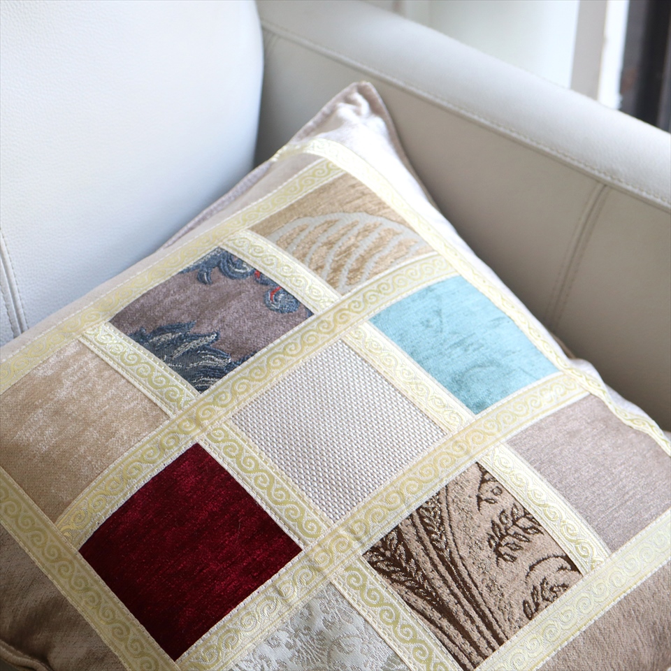- シュニール素材 モザイククッションカバー 45cmサイズ パッチワーク