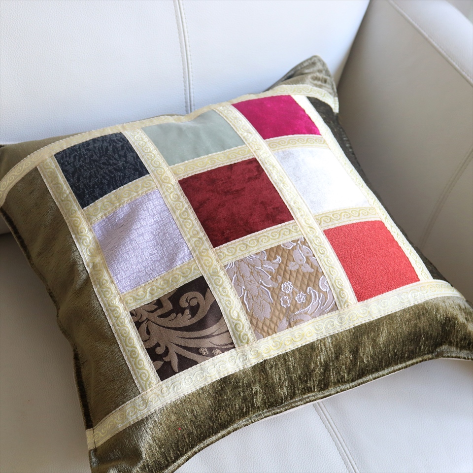 - シュニール素材 モザイククッションカバー 45cmサイズ パッチワーク