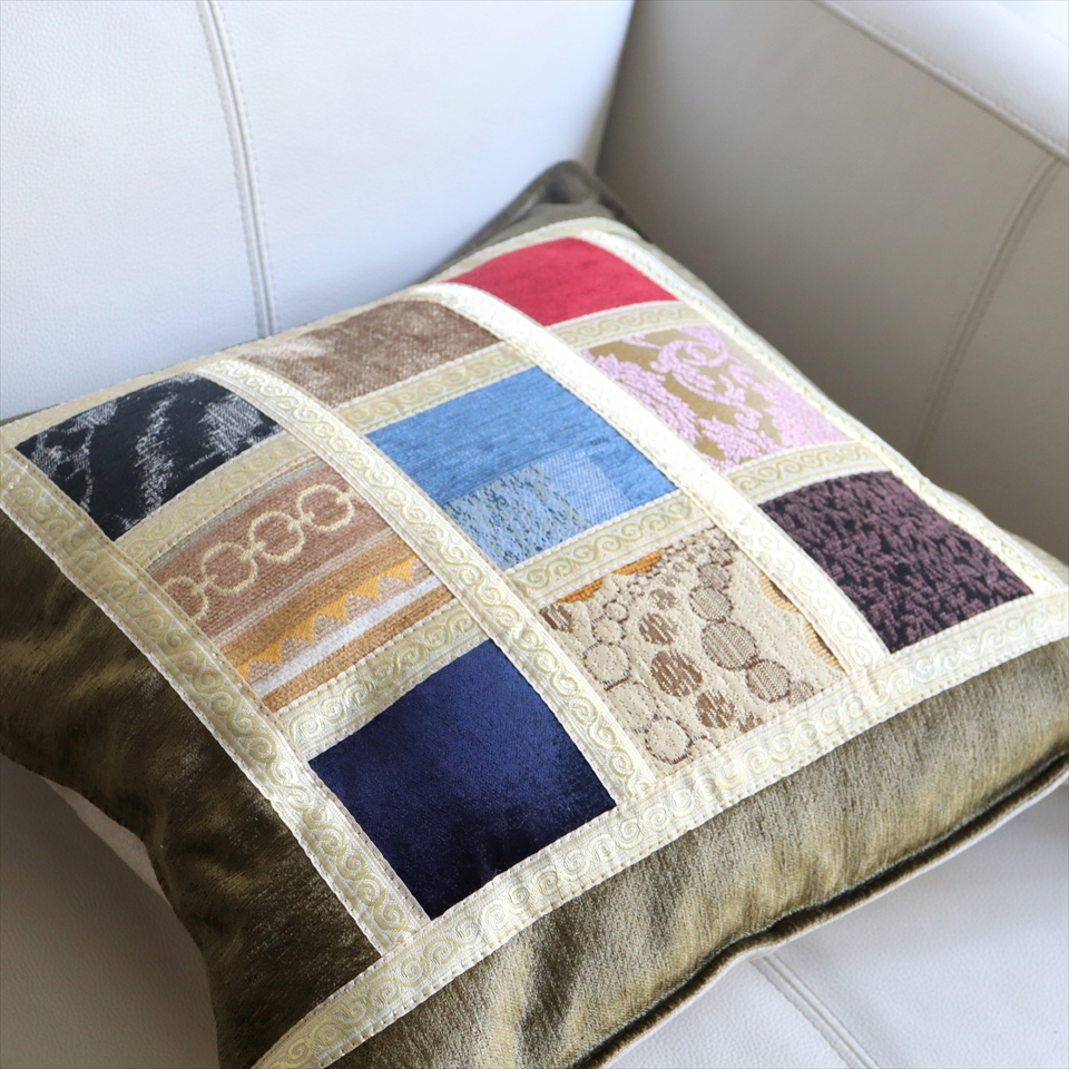 Key:パッチワーク ファブリック テキスタイル クッションカバー トルコ オスマントルコ オスマン朝 モダンインテリア インテリア ソファ アンティーク カントリー 45cm角 モザイククッションカバー