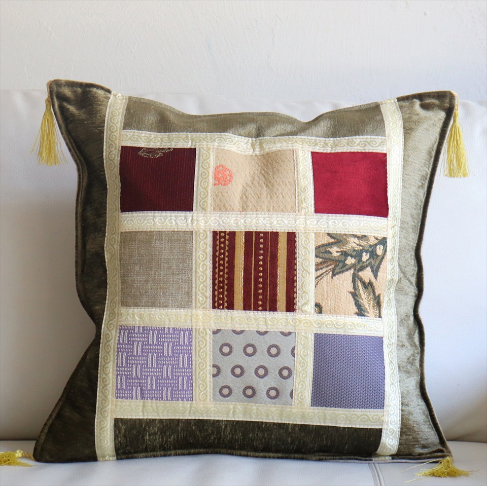 Key:パッチワーク ファブリック テキスタイル クッションカバー トルコ オスマントルコ オスマン朝 モダンインテリア インテリア ソファ アンティーク カントリー 45cm角 モザイククッションカバー
