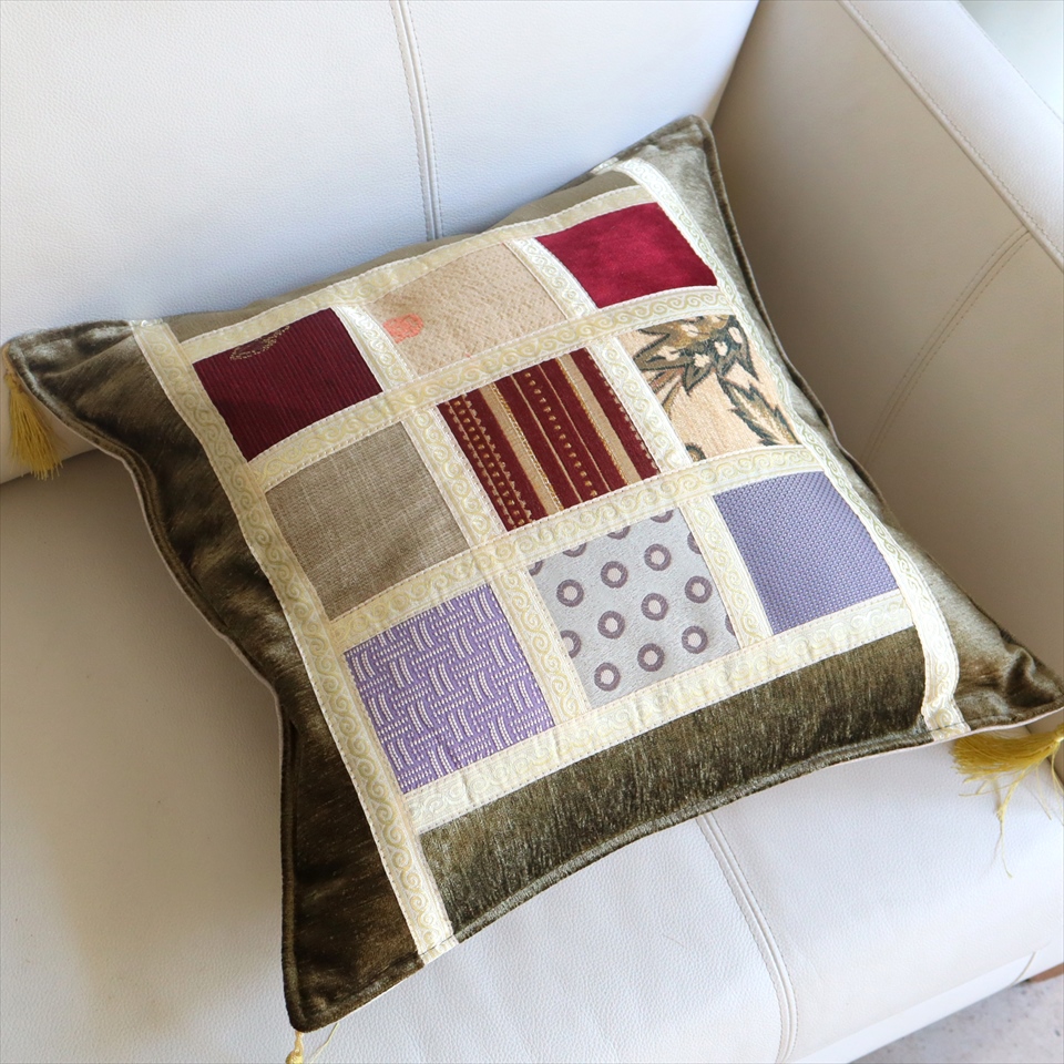 - シュニール素材 モザイククッションカバー 45cmサイズ パッチワーク