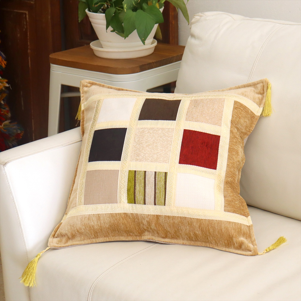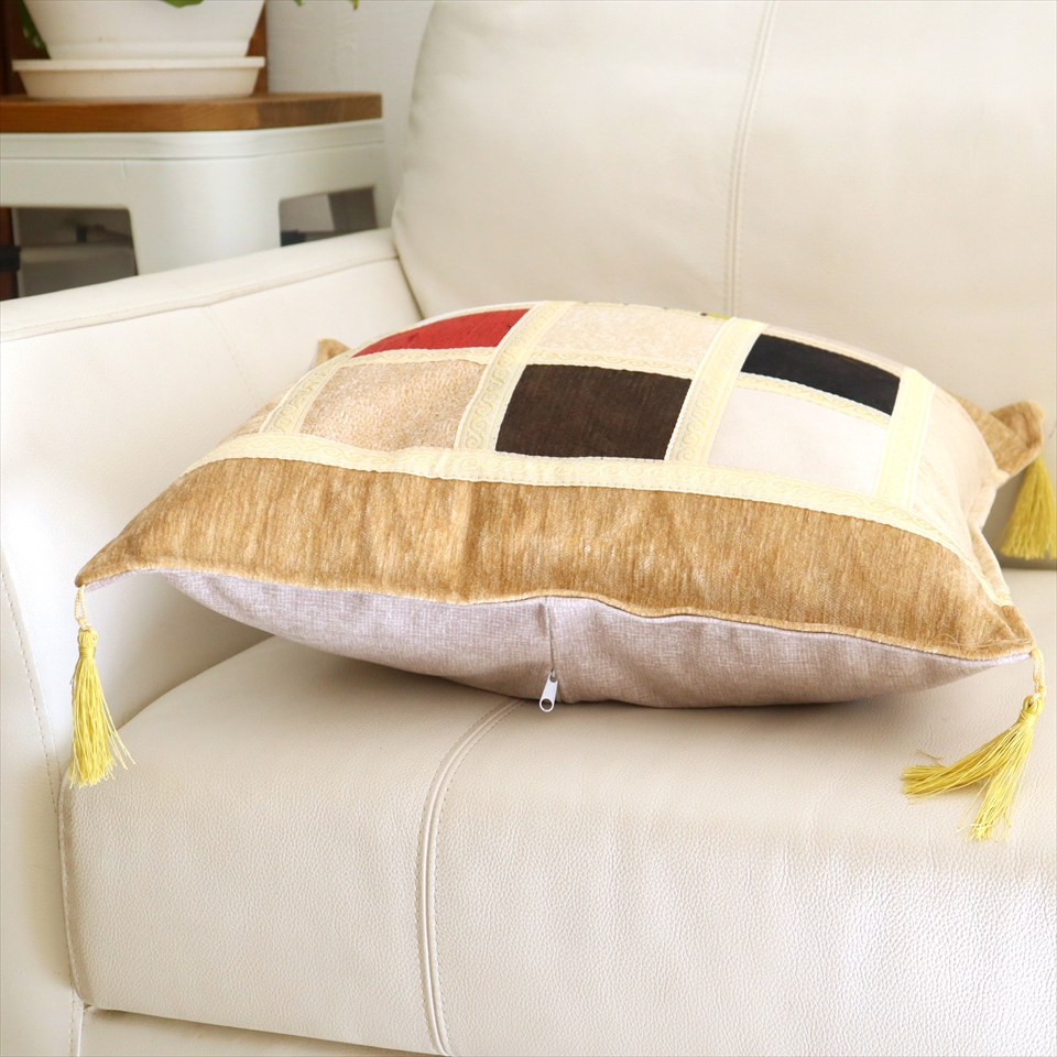 - シュニール素材 モザイククッションカバー 45cmサイズ パッチワーク