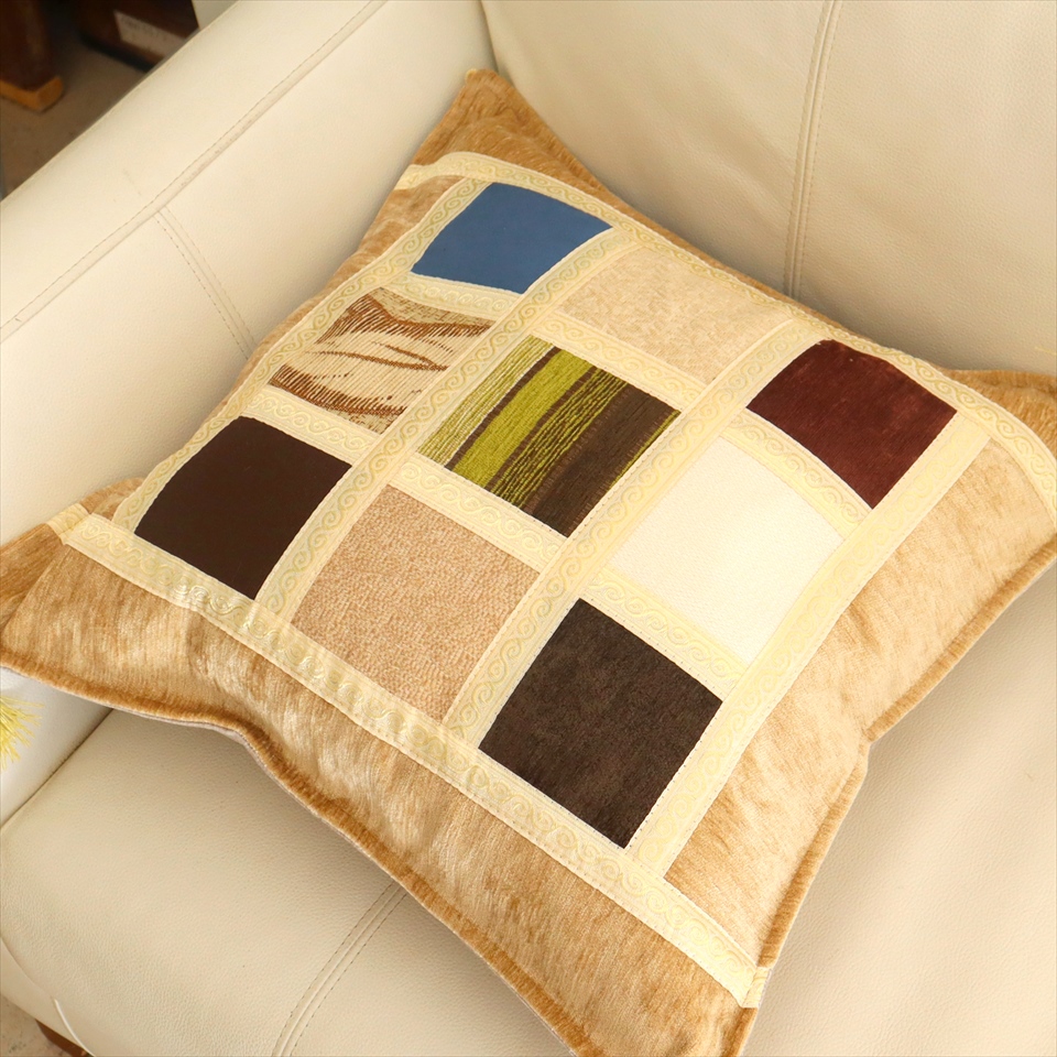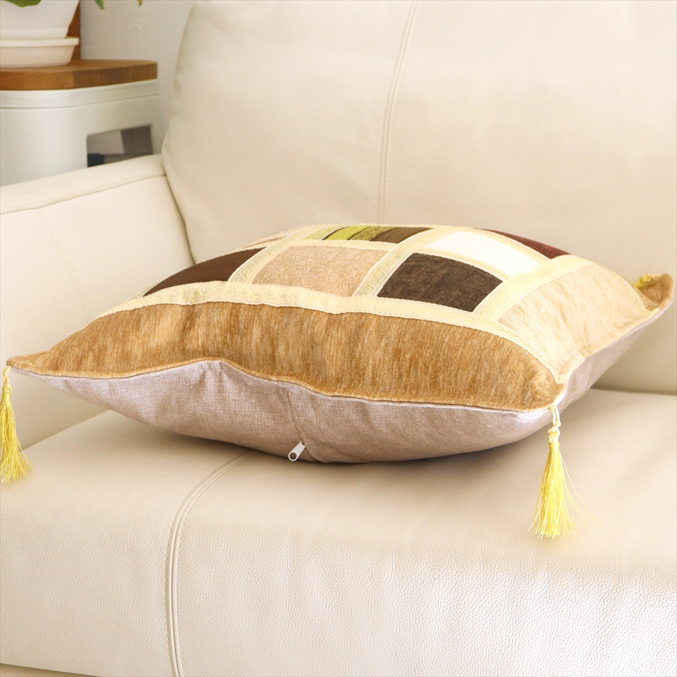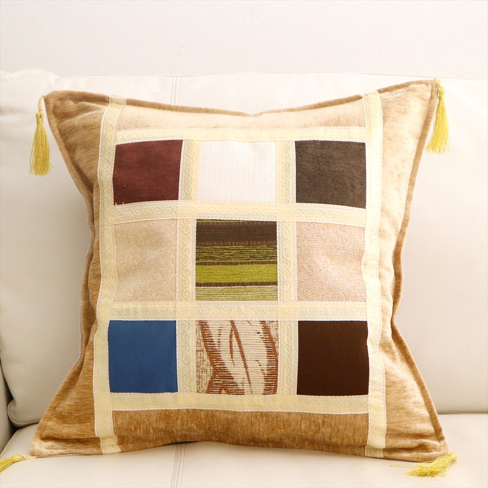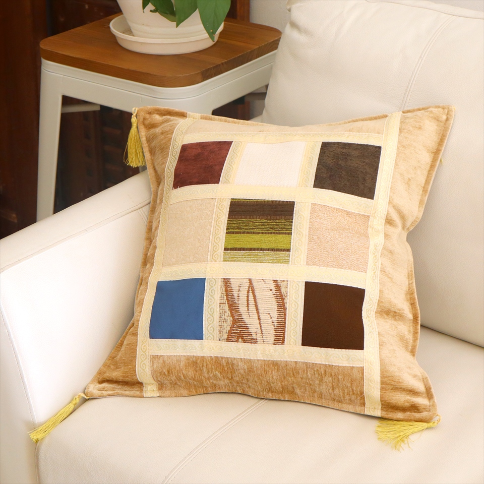 - シュニール素材 モザイククッションカバー 45cmサイズ パッチワーク