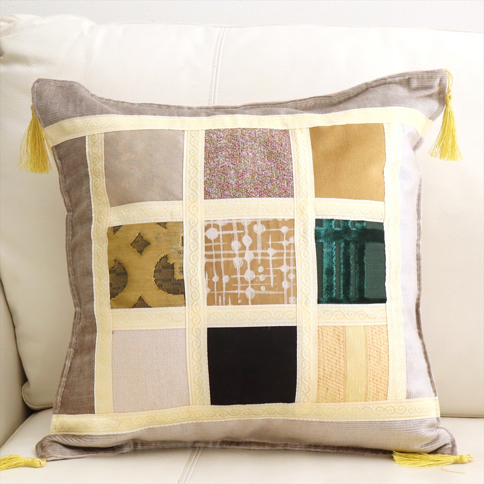 - シュニール素材 モザイククッションカバー 45cmサイズ パッチワーク