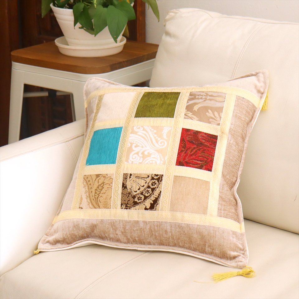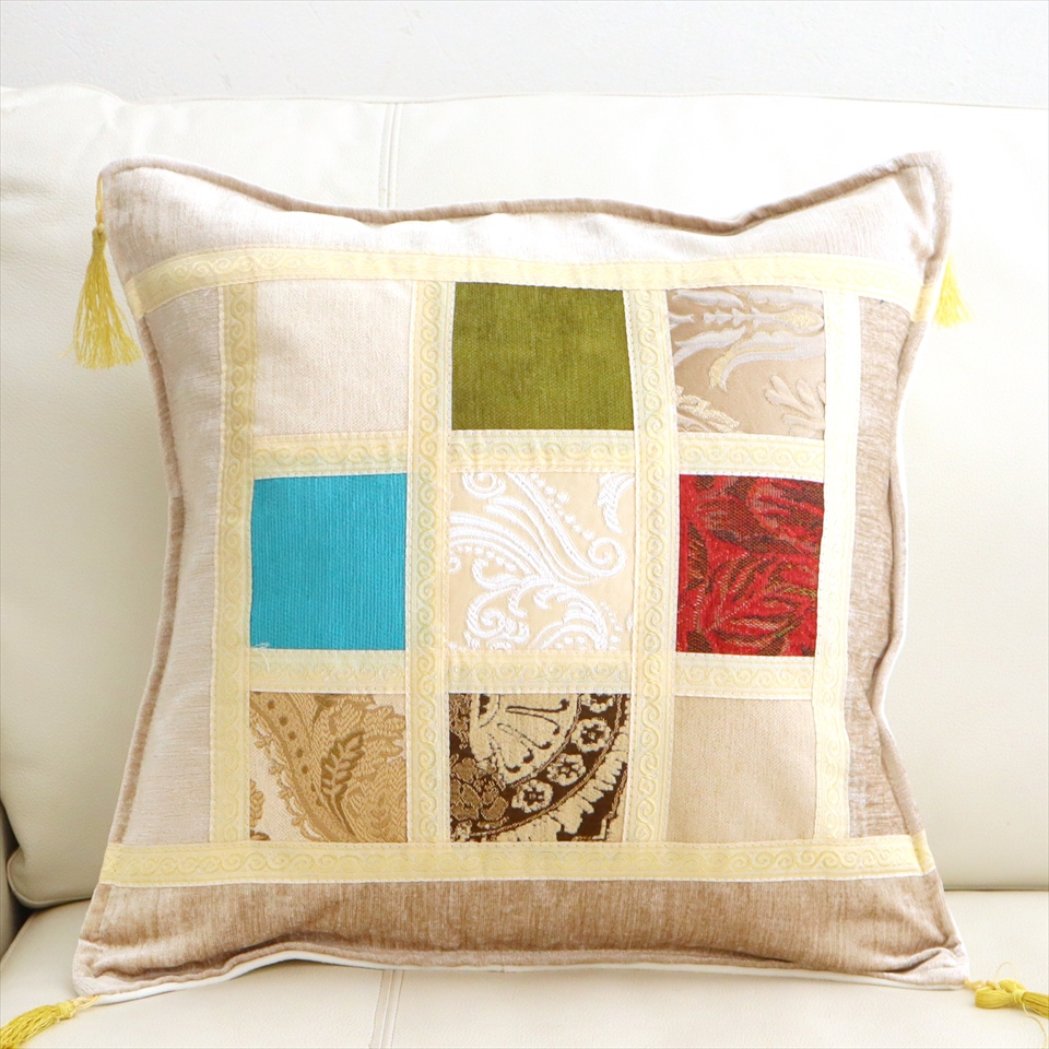 Key:パッチワーク ファブリック テキスタイル クッションカバー トルコ オスマントルコ オスマン朝 モダンインテリア インテリア ソファ アンティーク カントリー 45cm角 モザイククッションカバー