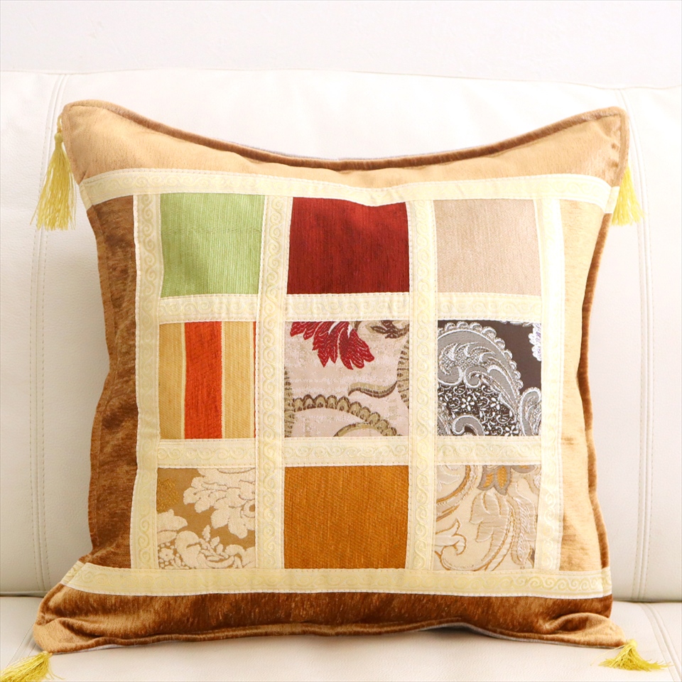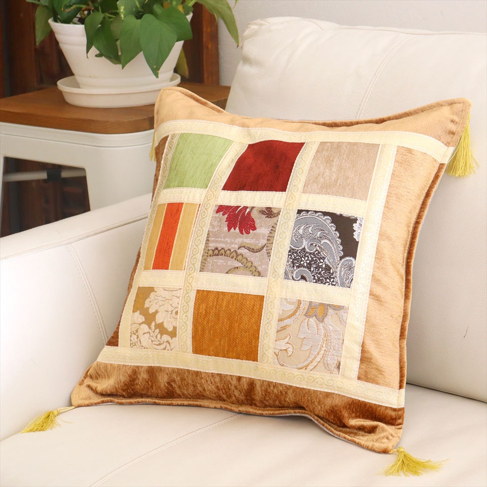 - シュニール素材 モザイククッションカバー 45cmサイズ パッチワーク