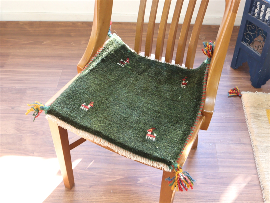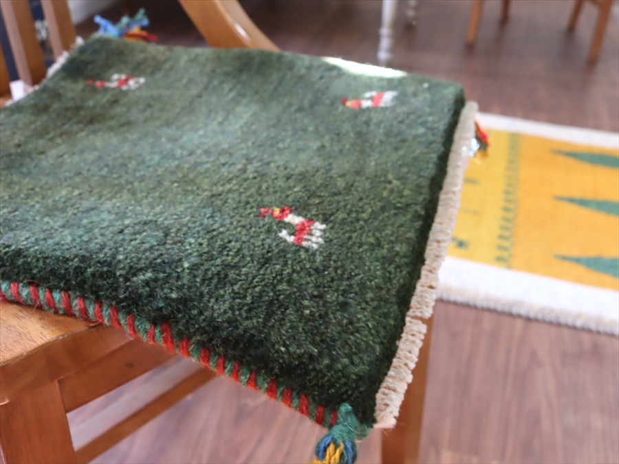 - ギャッベ イラン産手織り 座布団サイズ 39x43cm 深みのあるグリーン