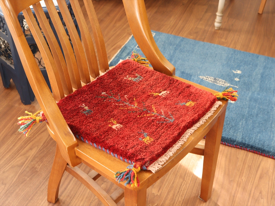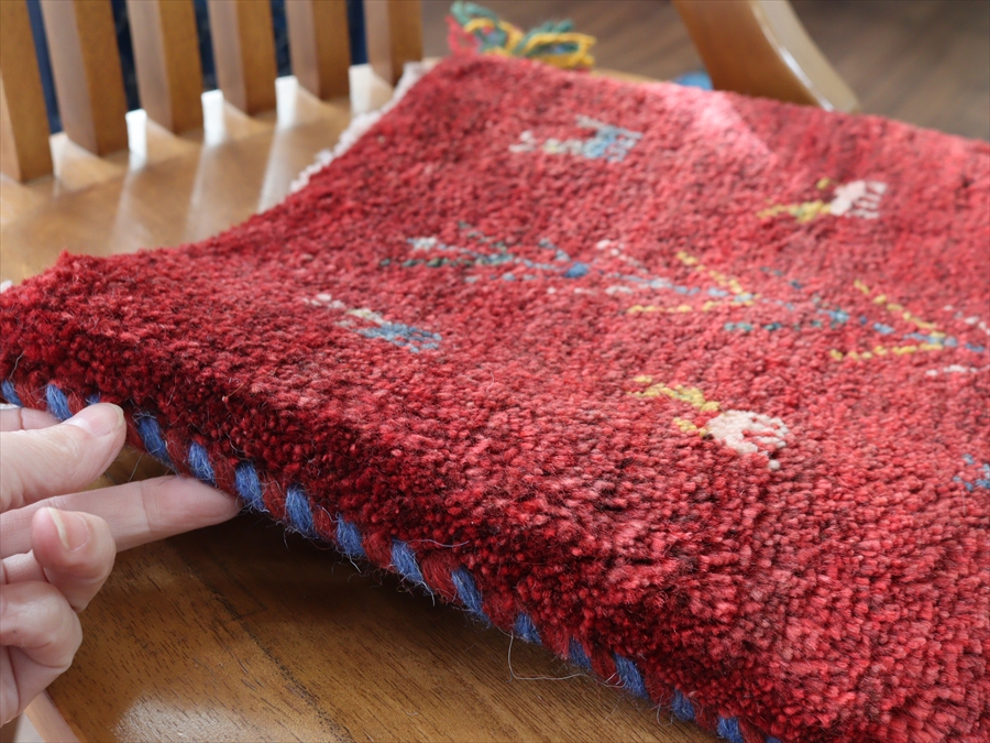 - ギャッベ イラン産手織り 座布団サイズ 35x38cm レッド 動物と草花