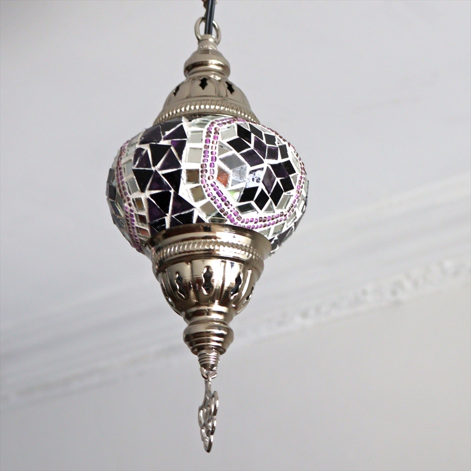 トルコランプ モザイクペンダントランプ 直径13cm 全高67cm パープル シルバーカラーの灯具