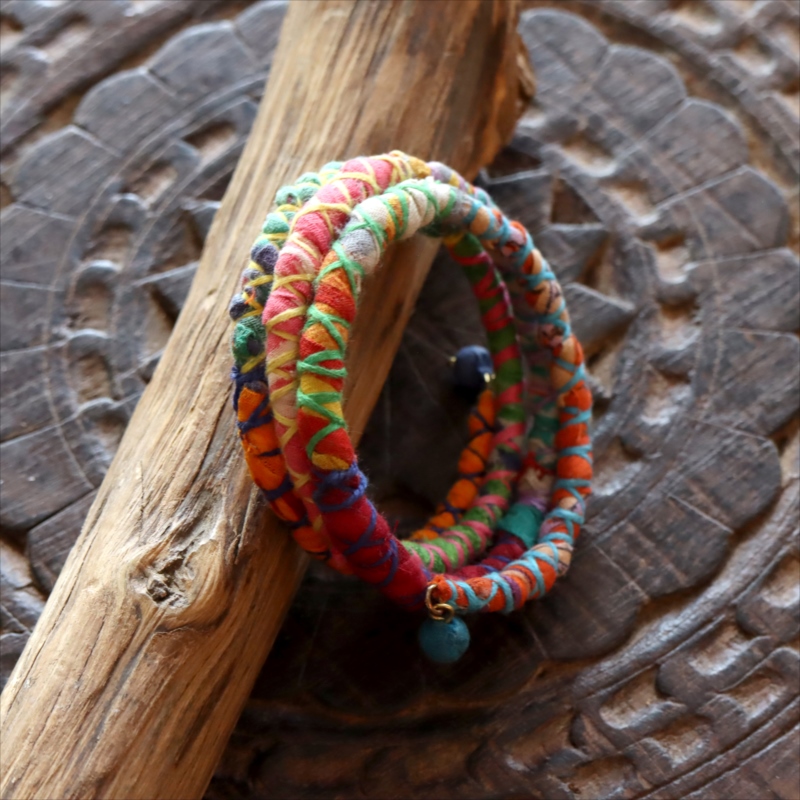 - リサイクルサリー スパイラルバングル インド 手作りブレスレット