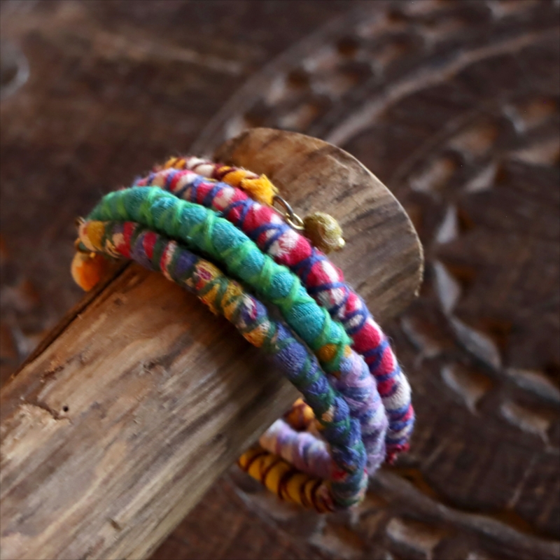 - リサイクルサリー スパイラルバングル インド 手作りブレスレット