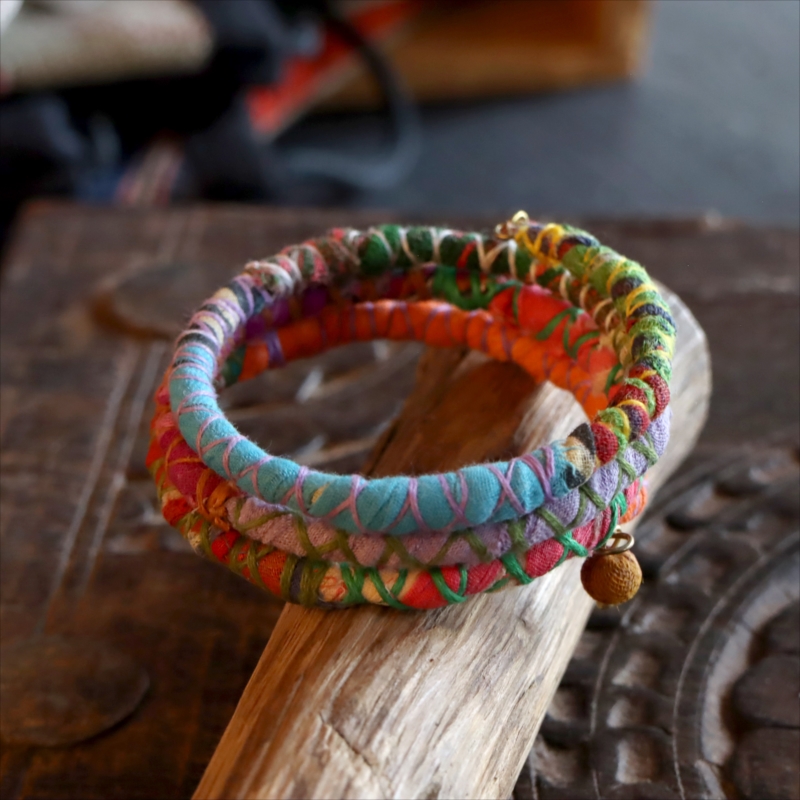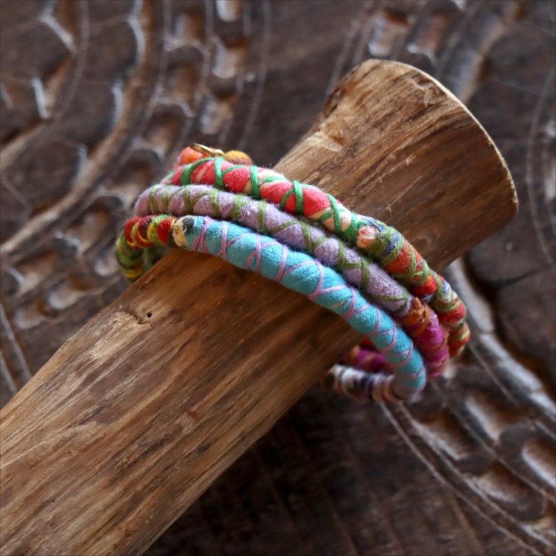 - リサイクルサリー スパイラルバングル インド 手作りブレスレット