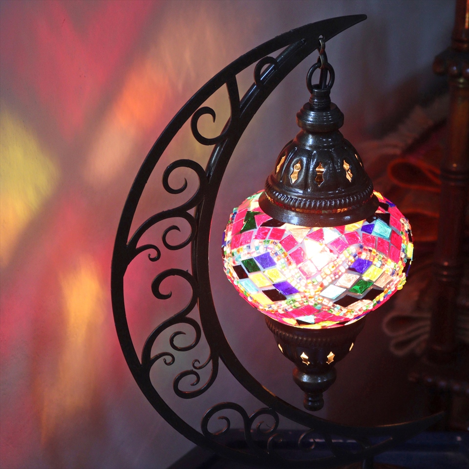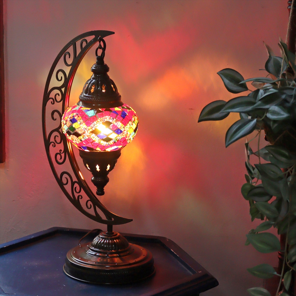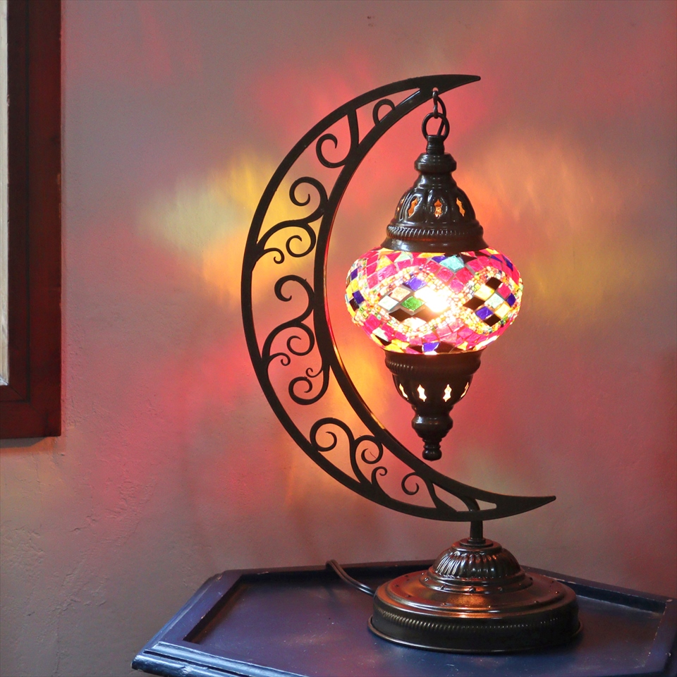 - トルコランプ モザイクテーブルランプ クレッセントムーン 高さ41cm ミックスカラー