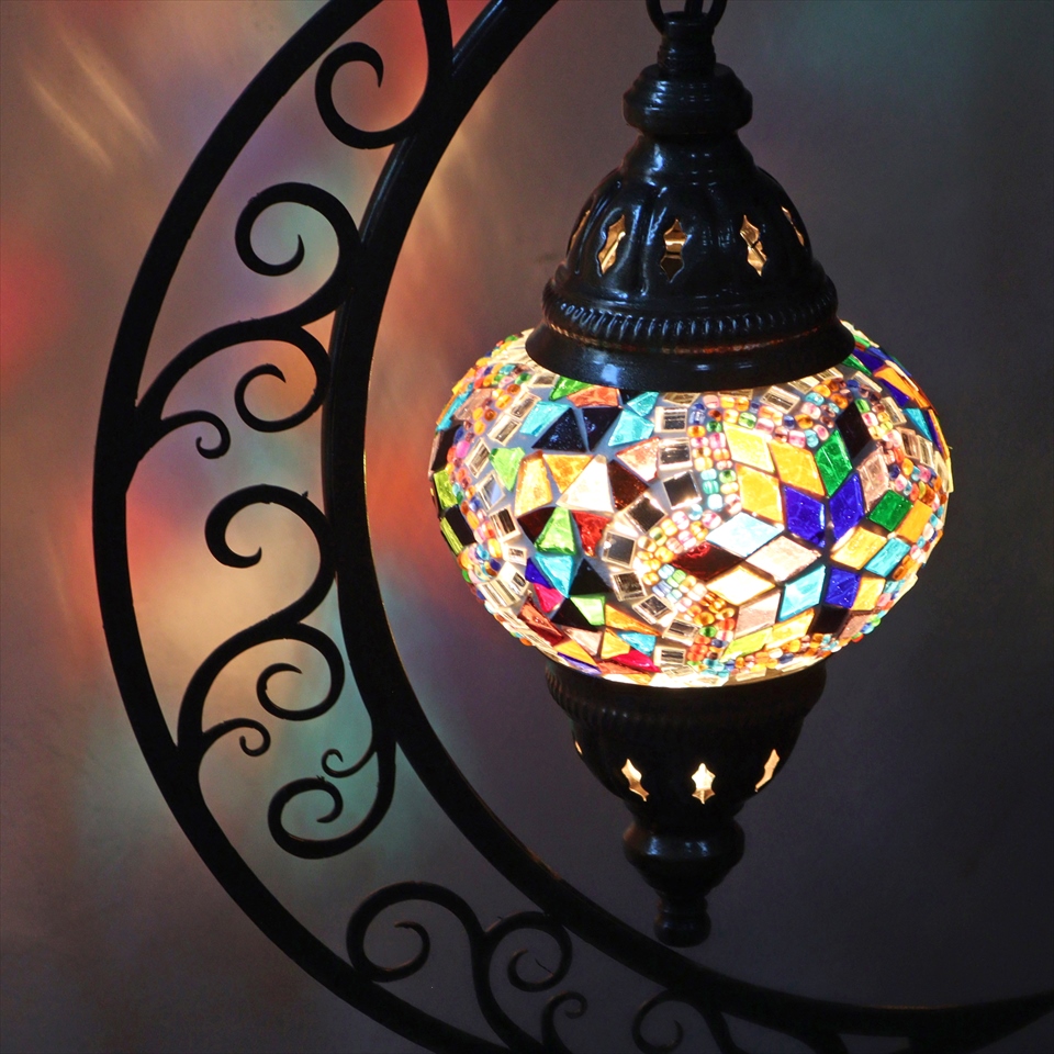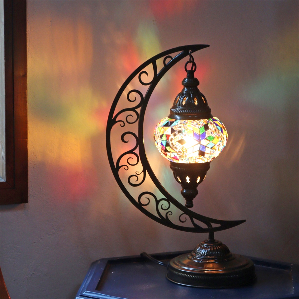 - トルコランプ モザイクテーブルランプ クレッセントムーン 高さ41cm ミックスカラー