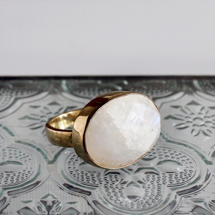 - シルバーリング レインボームーンストーン オーバル横向き 大粒 18KGF 天然石 トルコジュエリー