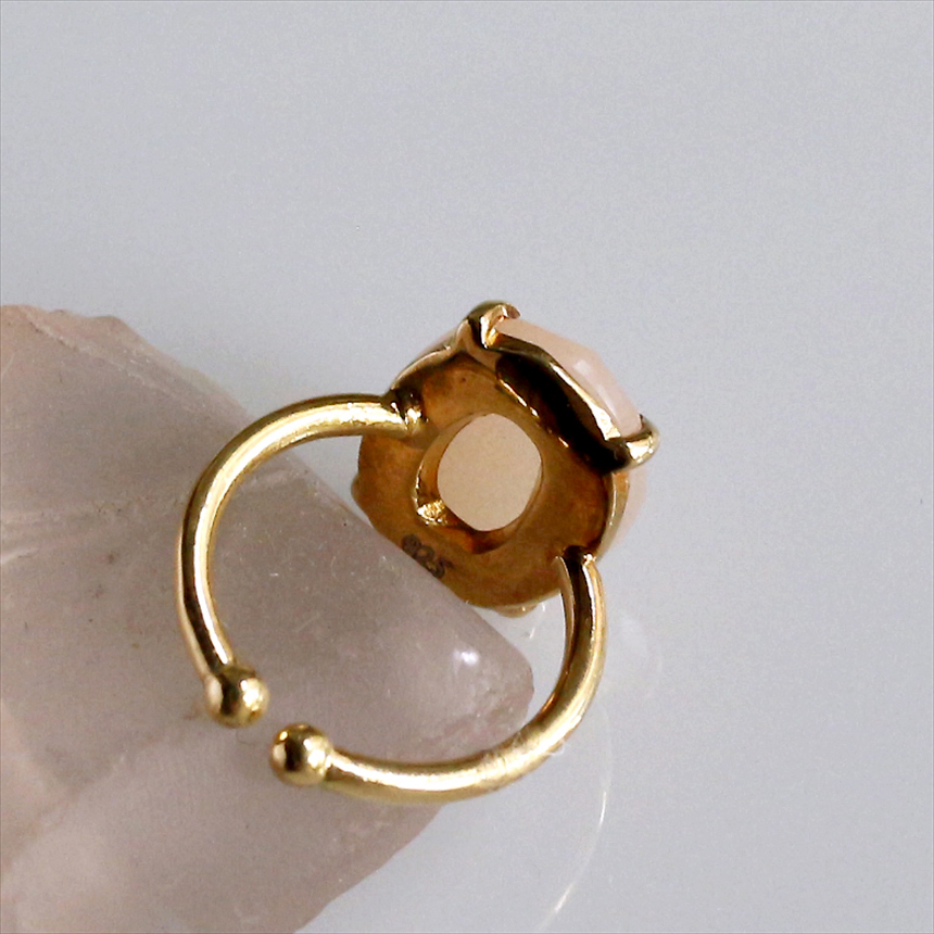 - ピーチムーンストーン オーバル シルバーリング 18KGF 天然石 トルコジュエリー 天然石
