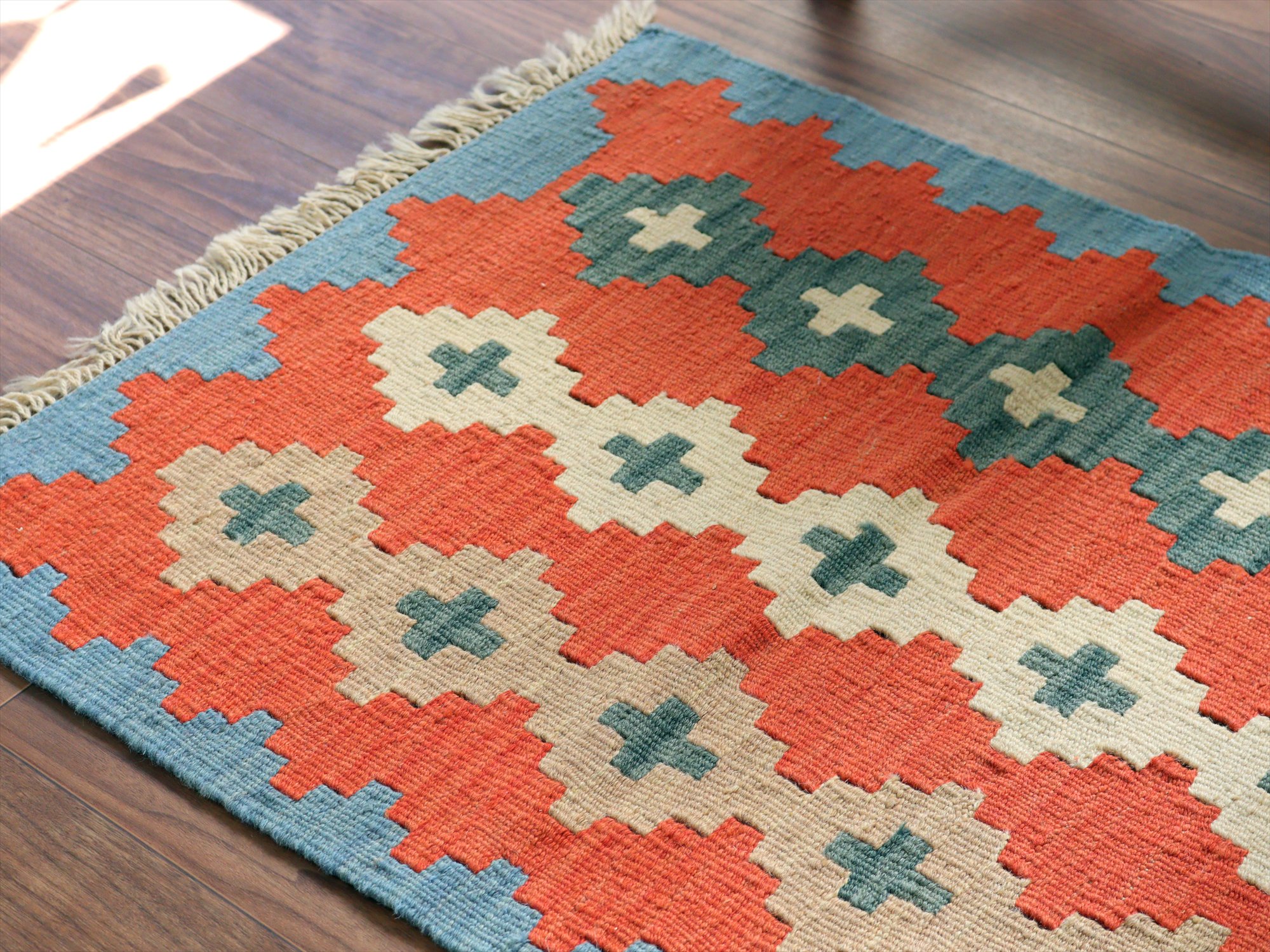 手織りキリム イラン シラーズ87×65cm カラフルな幾何学モチーフ