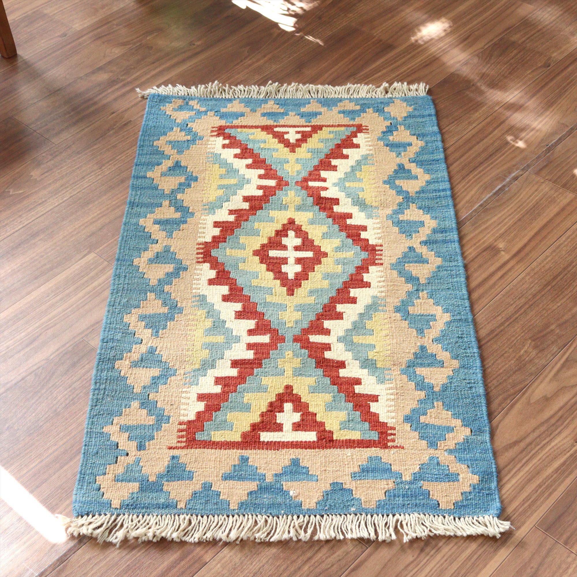 手織りキリム イラン シラーズ104×63cm カラフルな幾何学モチーフ