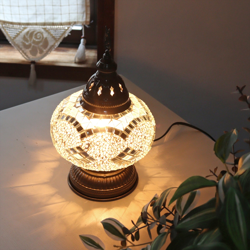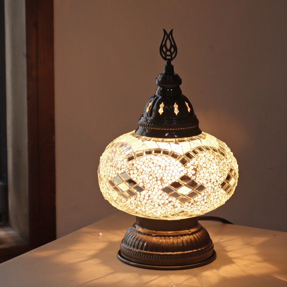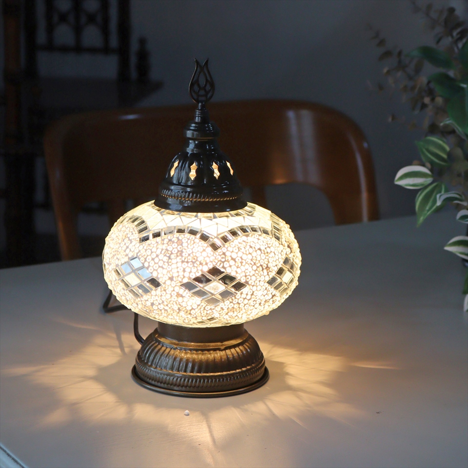 トルコランプ モザイクテーブルランプ 直径16cm 高さ27cm ホワイト
