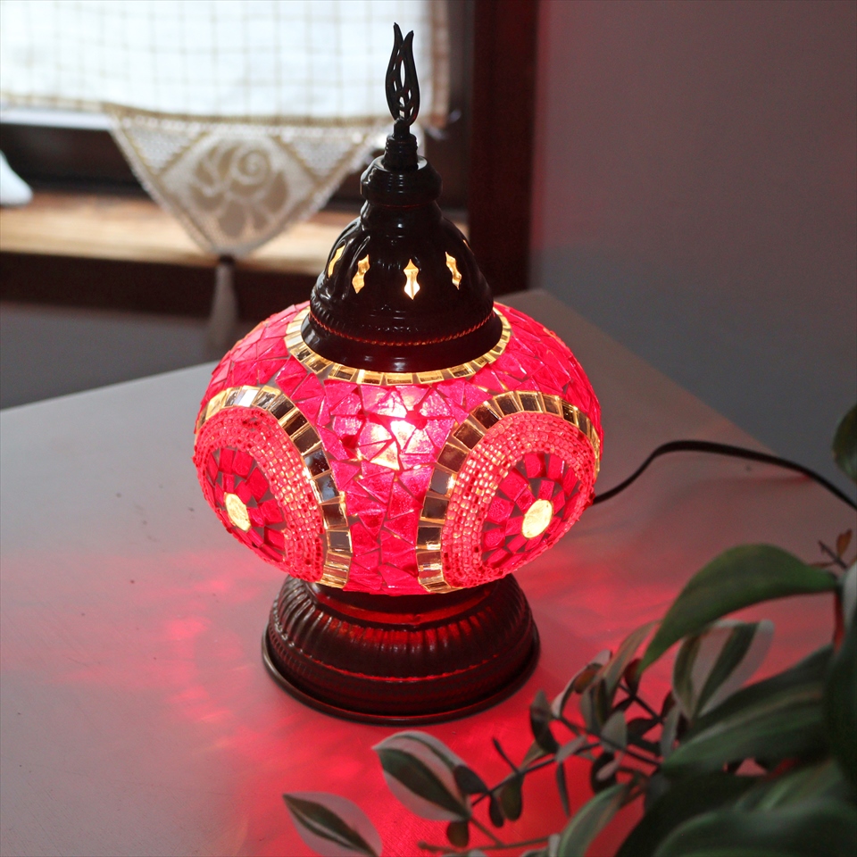 - トルコランプ モザイクテーブルランプ 直径16cm 高さ27cm レッド