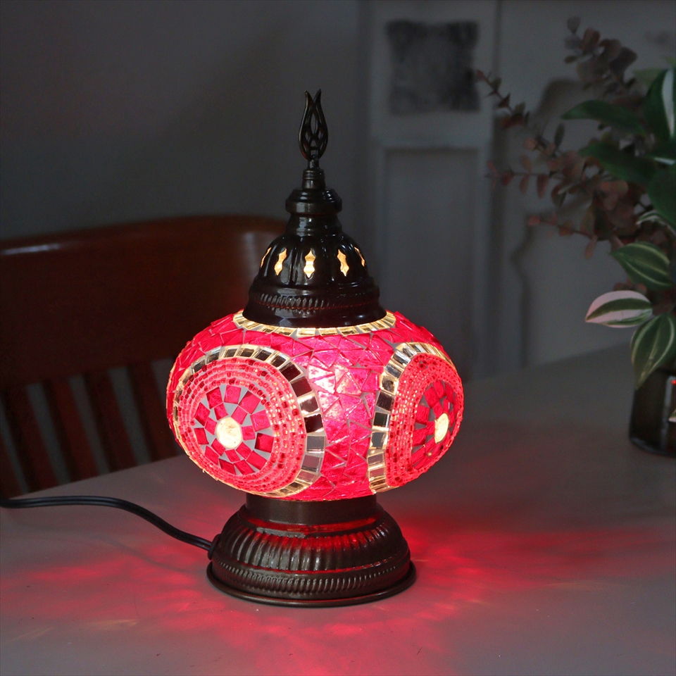 トルコランプ モザイクテーブルランプ 直径16cm 高さ27cm レッド