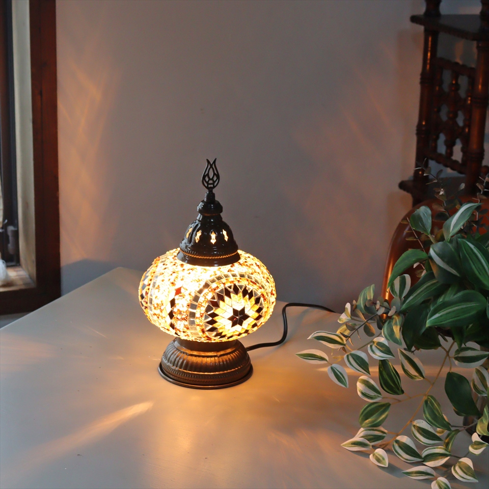 トルコランプ モザイクテーブルランプ 直径16cm 高さ27cm アンバー