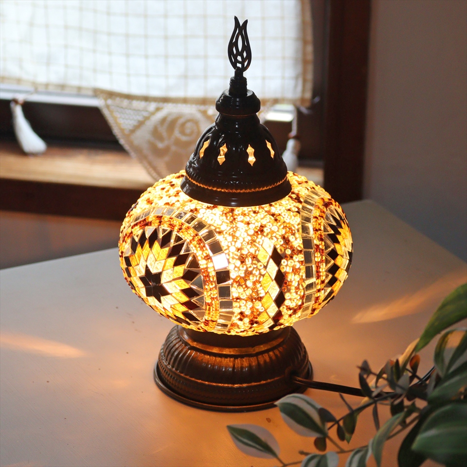 - トルコランプ モザイクテーブルランプ 直径16cm 高さ27cm アンバー