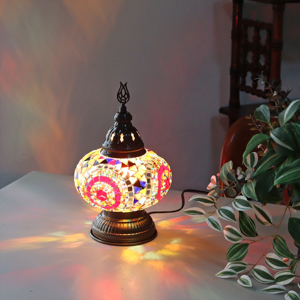 - トルコランプ モザイクテーブルランプ 直径16cm 高さ27cm ミックスカラー
