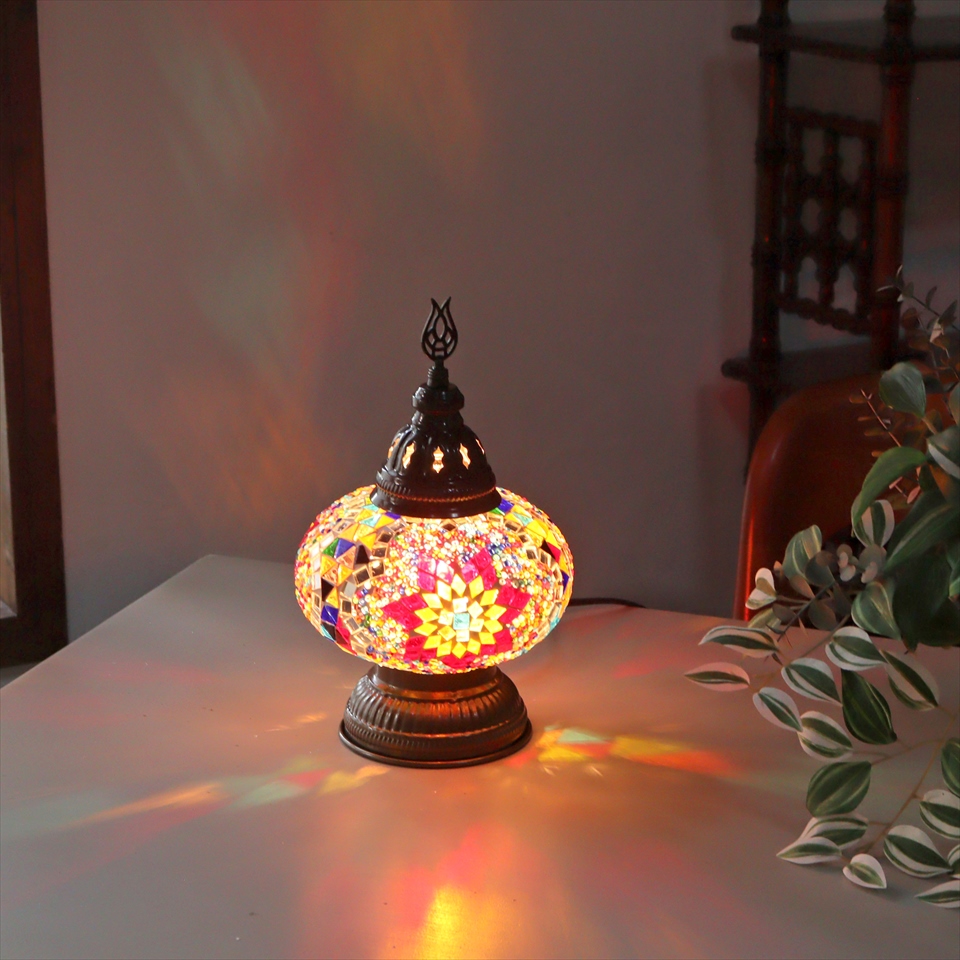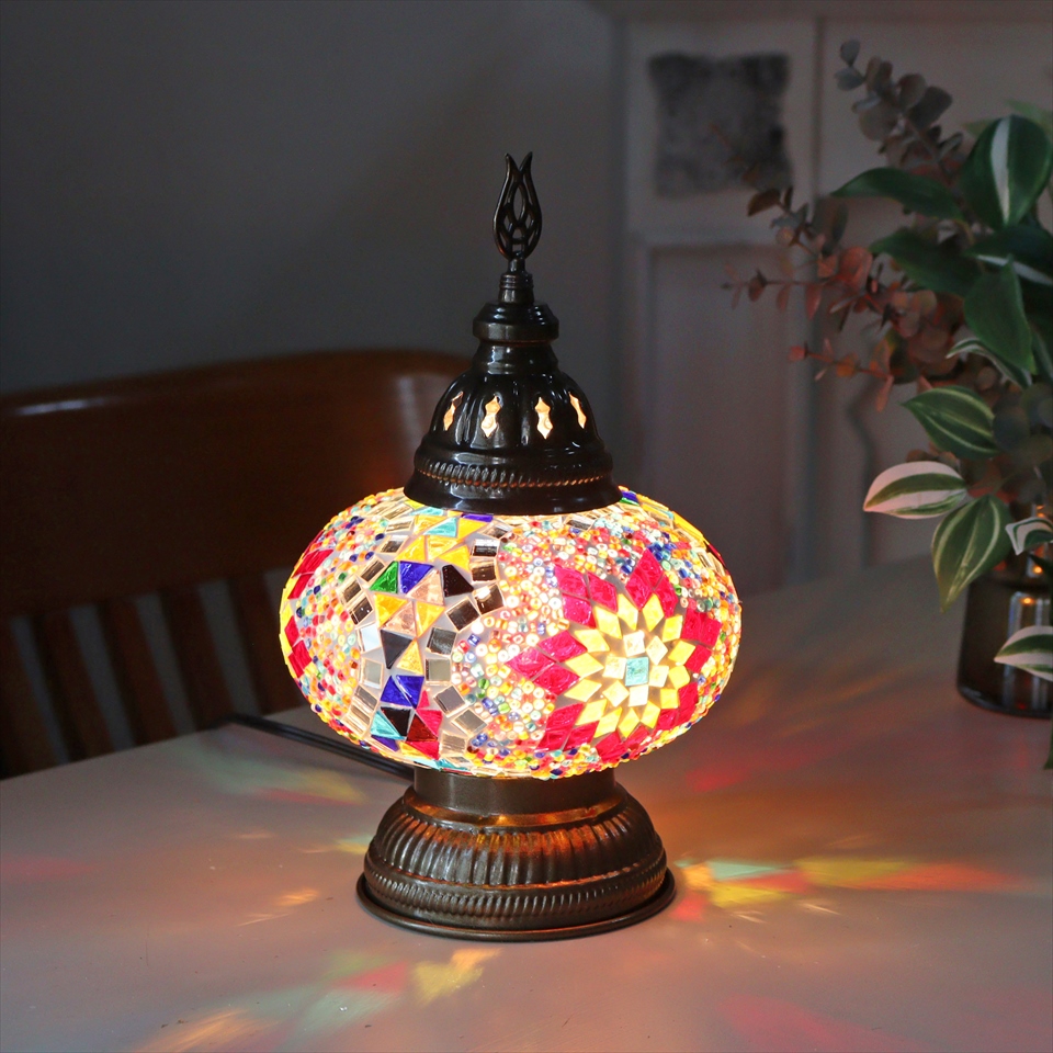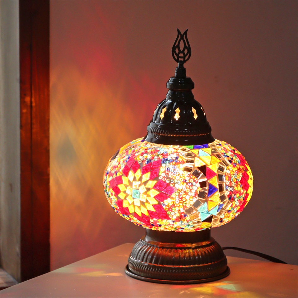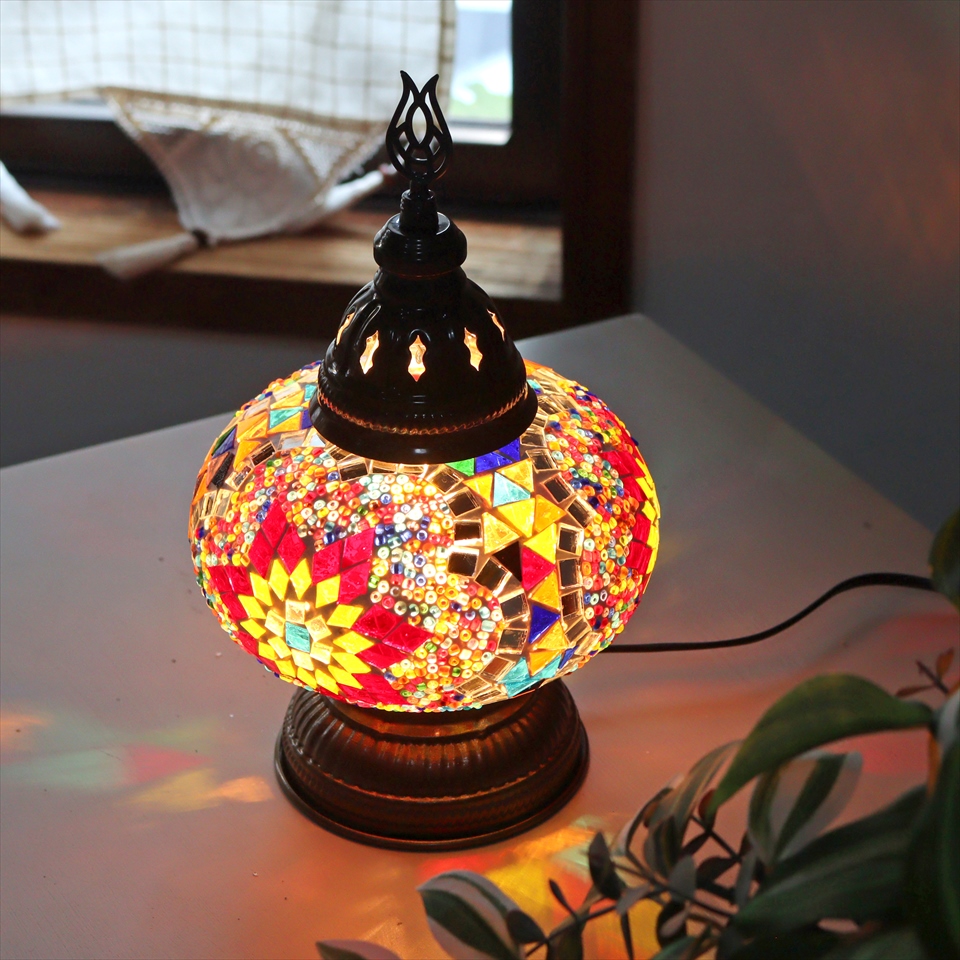 トルコランプ モザイクテーブルランプ 直径16cm 高さ27cm ミックスカラー