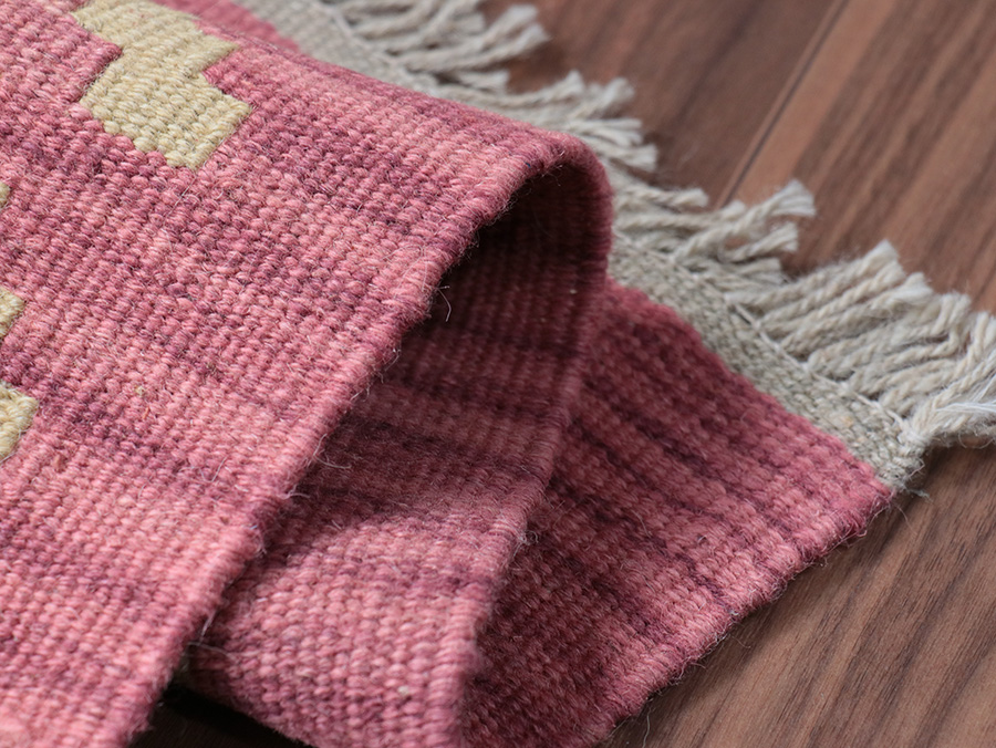 キリムはすべて手織りで作られています。織る女性の手の加減によって、サイズの多少の誤差やゆがみ等がありますことはご了承願います。