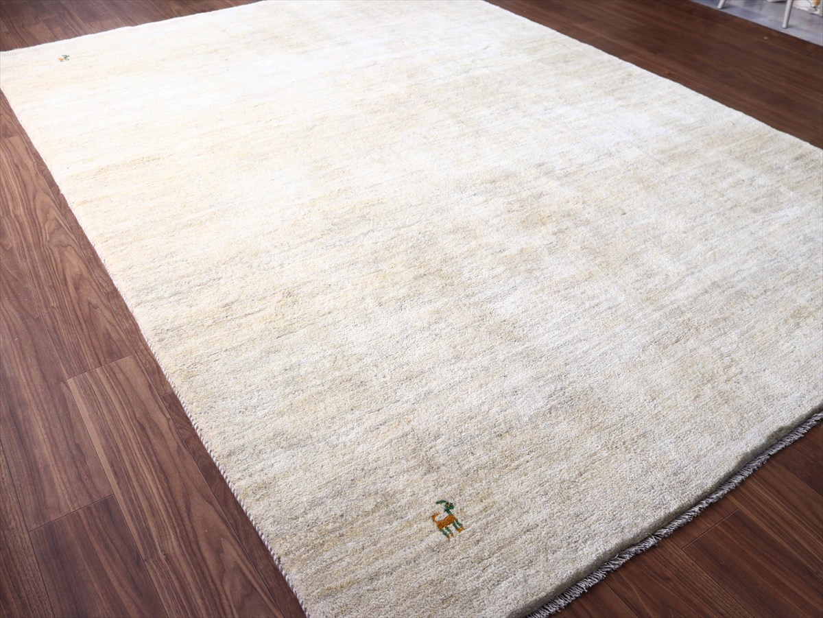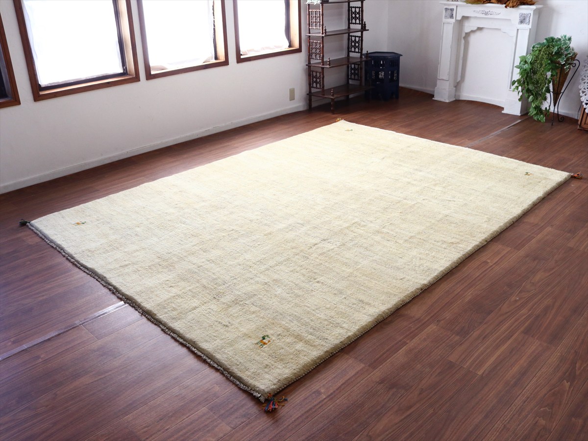 ギャッベ Gabbeh ナチュラルアイボリー 297×210cm イラン産 四隅に動物モチーフ 特大サイズ