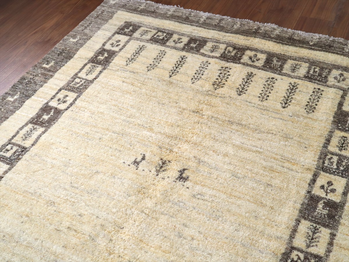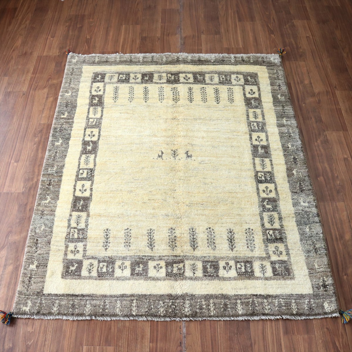 ギャッベ Gabbeh ナチュラルアイボリー 197×160cm イラン産 生命の樹と動物