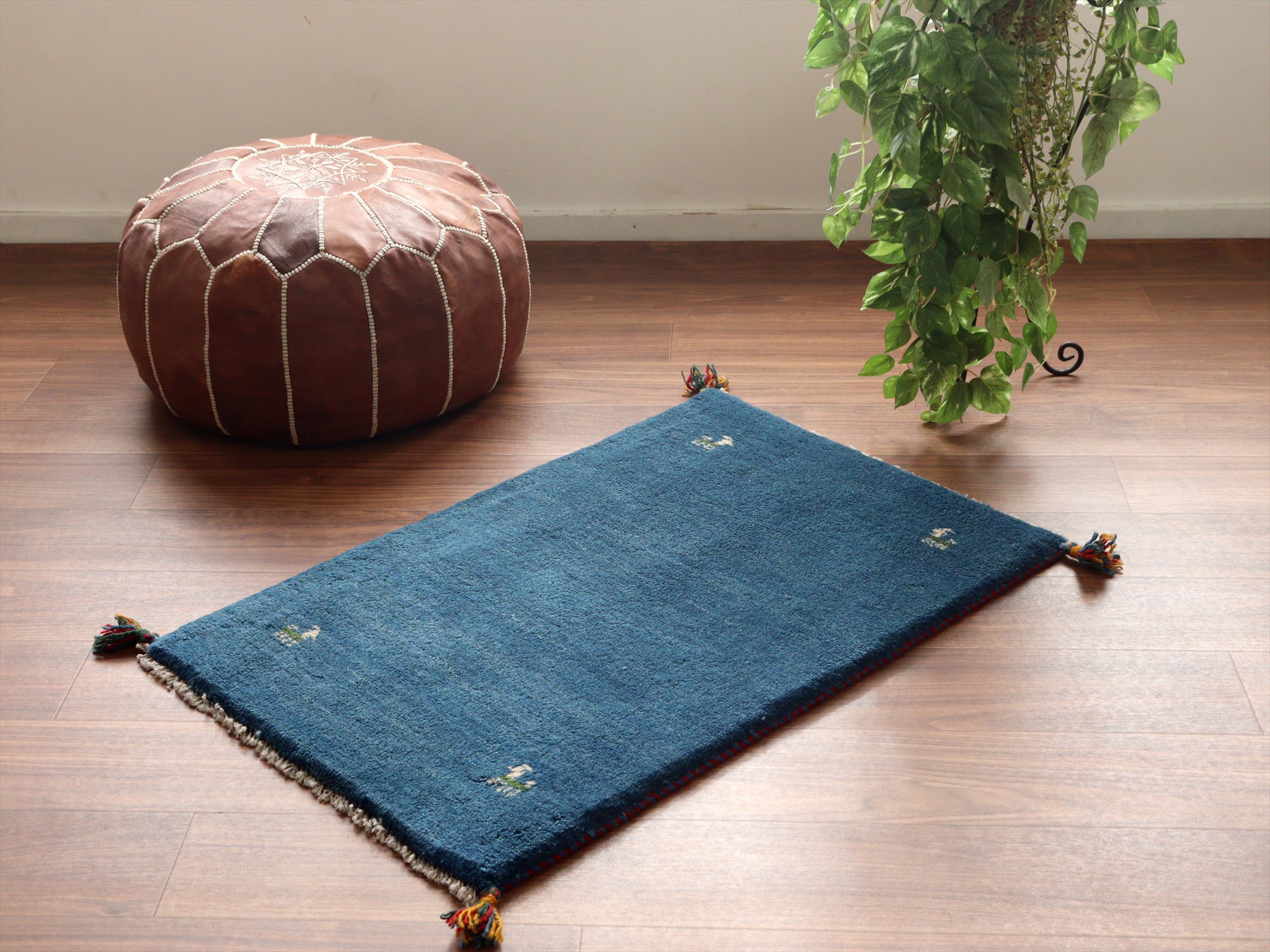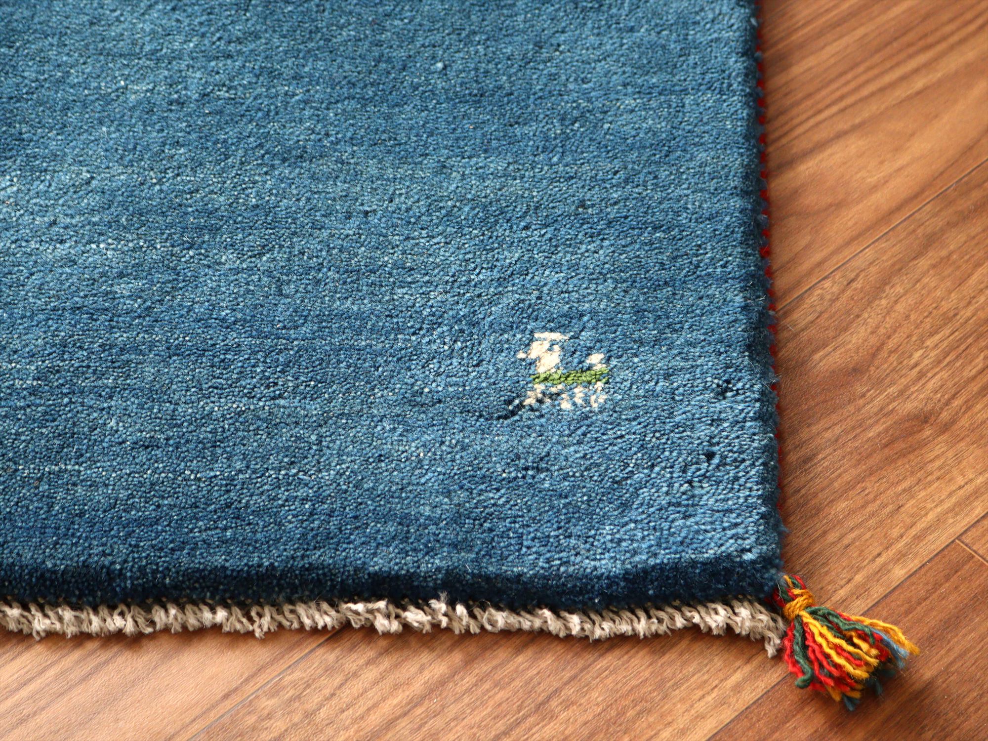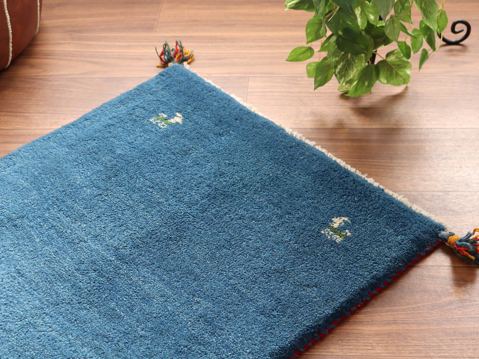 ギャッベ イラン産手織りラグ 93x60cm ブルー シンプルモチーフ