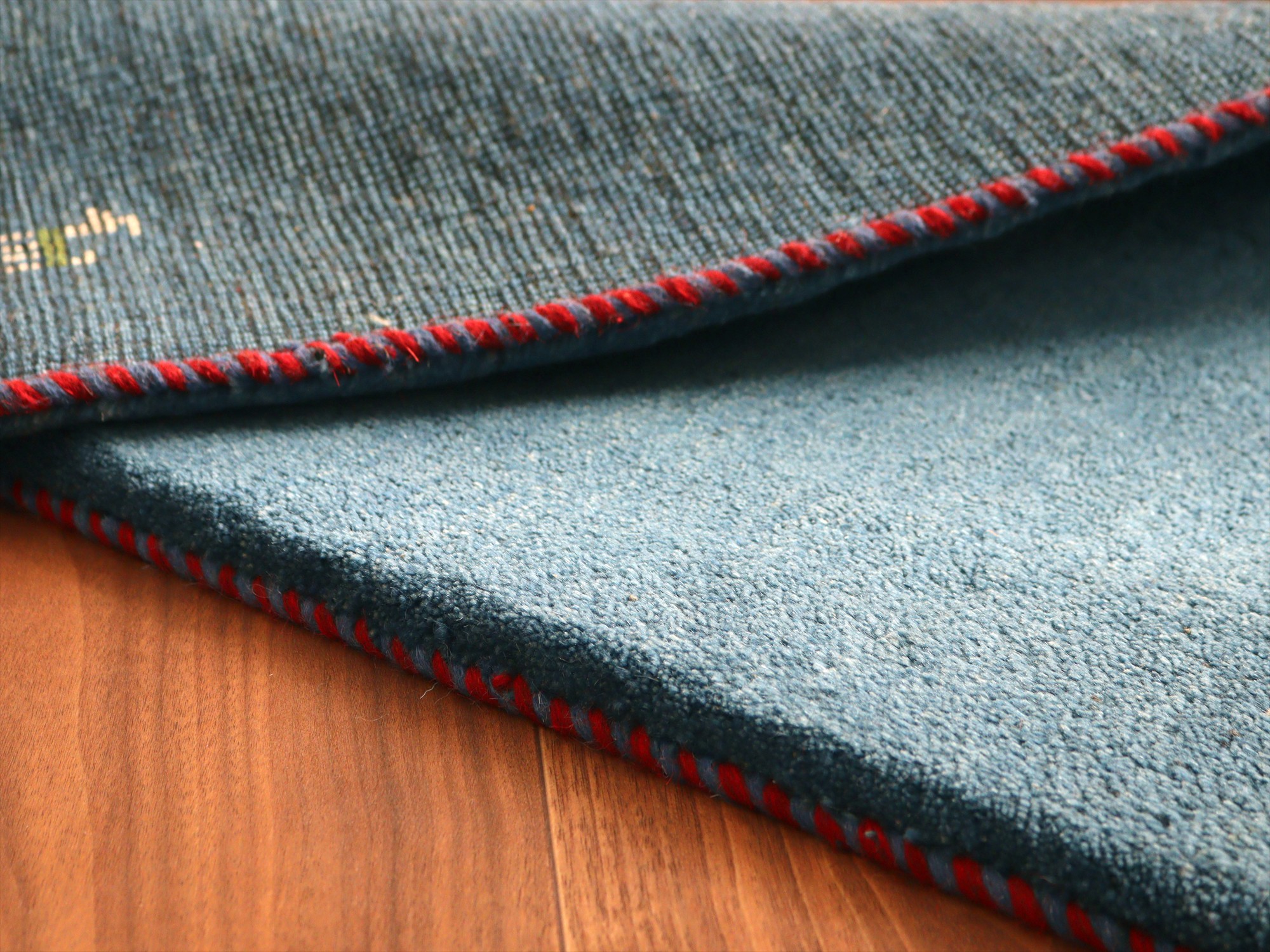 - ギャッベ イラン産手織りラグ 93x60cm ブルー シンプルモチーフ