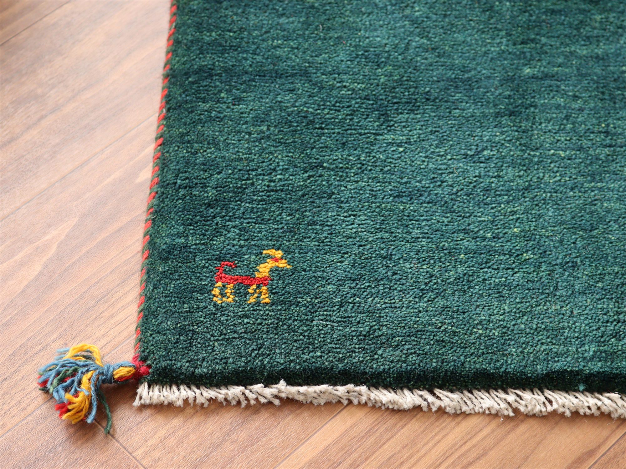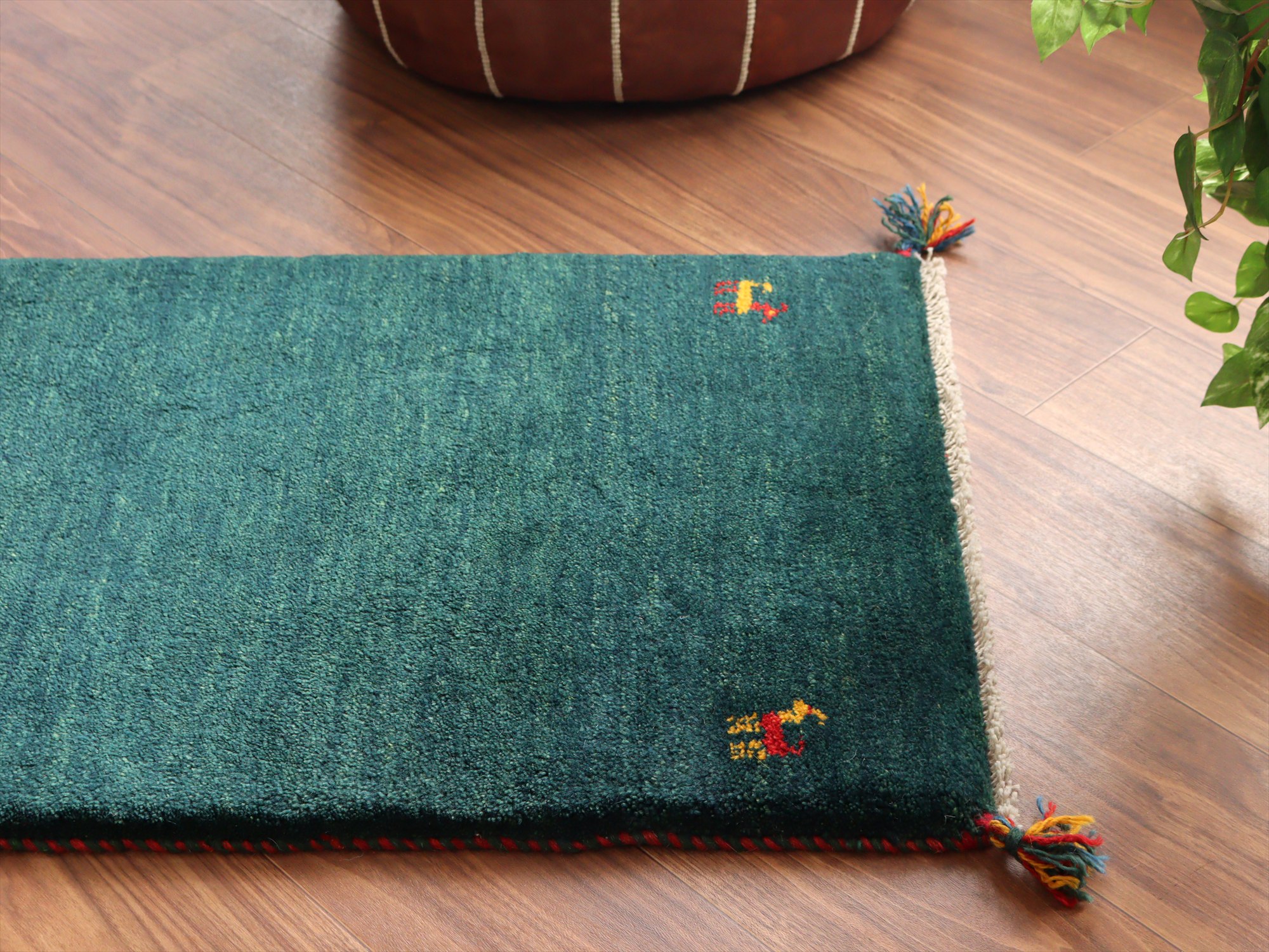 - ギャッベ イラン産手織りラグ 86x60cm グリーン シンプルモチーフ